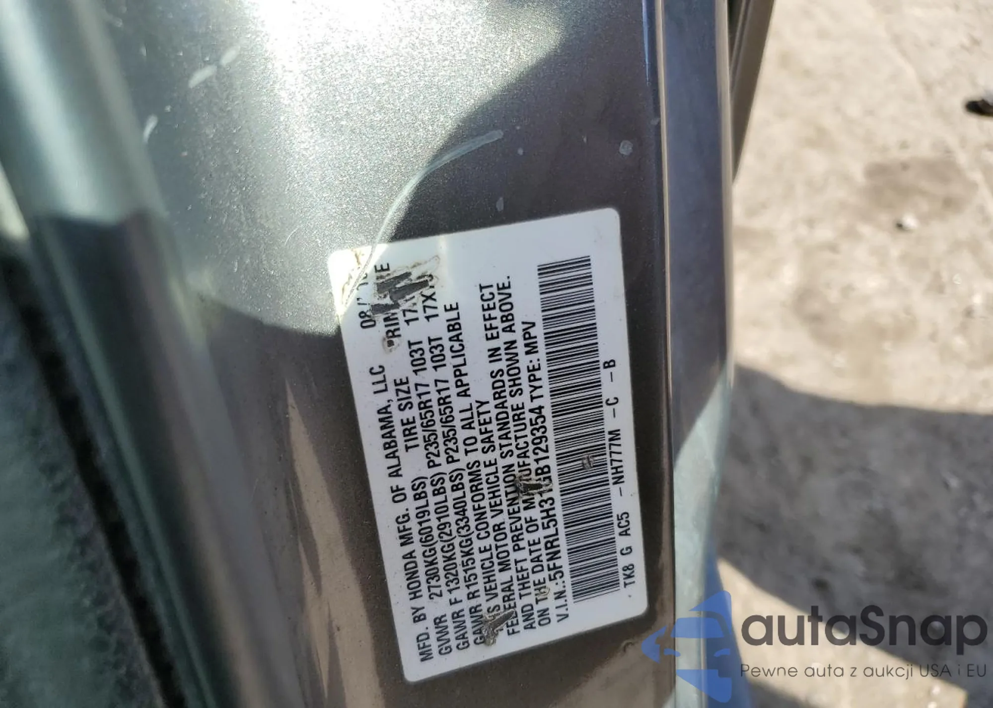 • VIN 5FNRL5H31GB129354