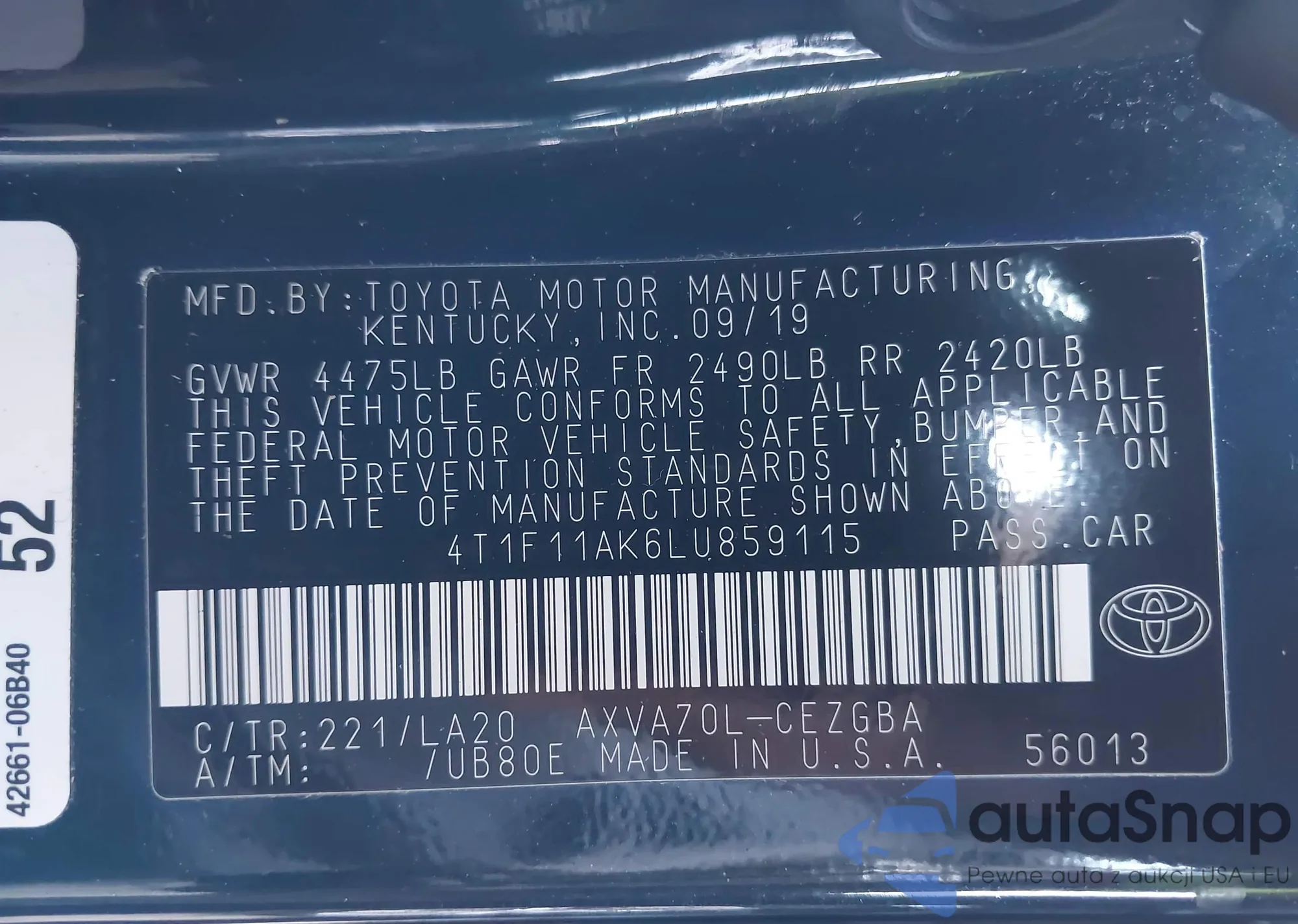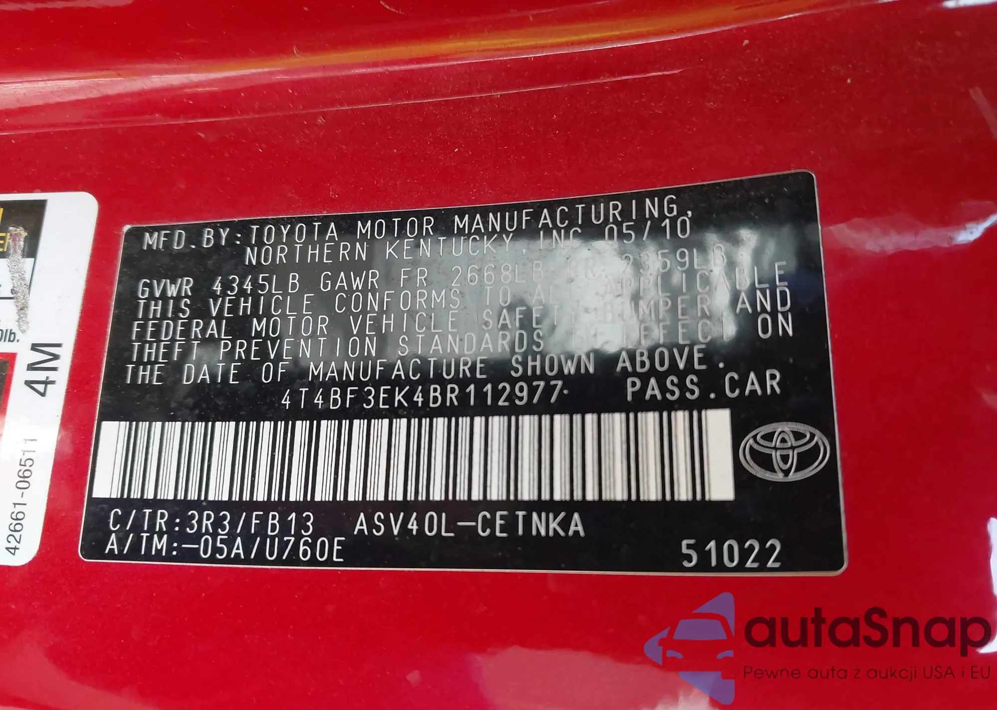 • VIN 4T1BF1FK8GU252244