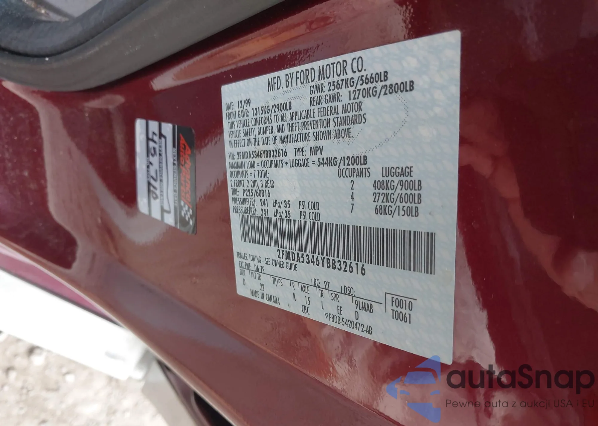LOT: 43712336 VIN: 2FMDA5346YBB32616