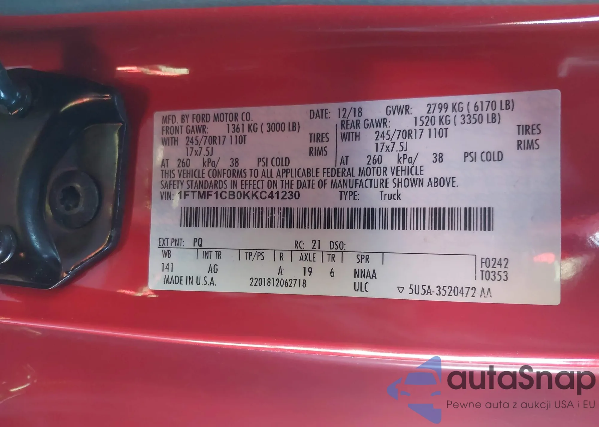 LOT: 43728898 VIN: 1FTMF1CB0KKC41230