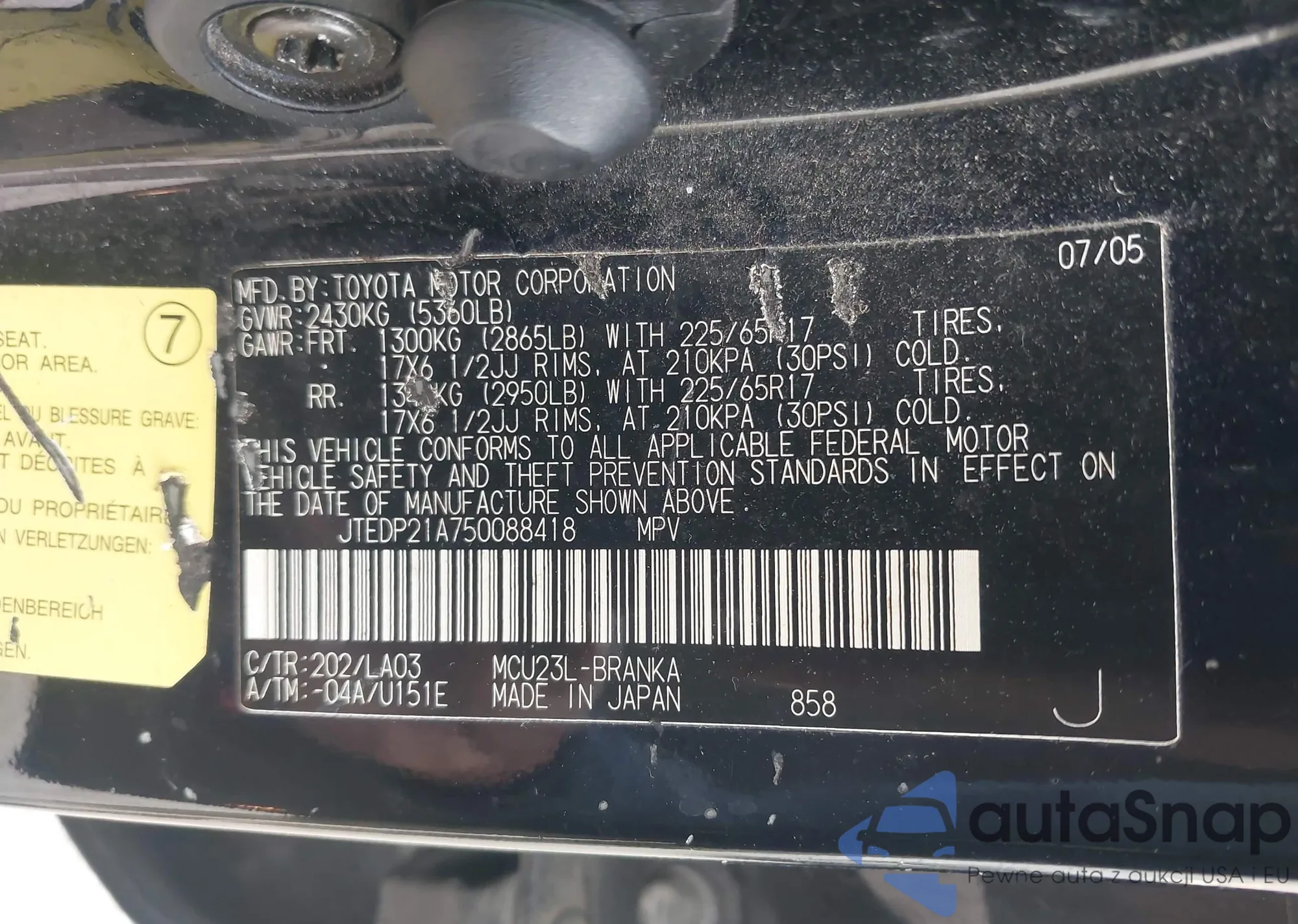 LOT: 43760873 VIN: 4T1BE46K97U556493