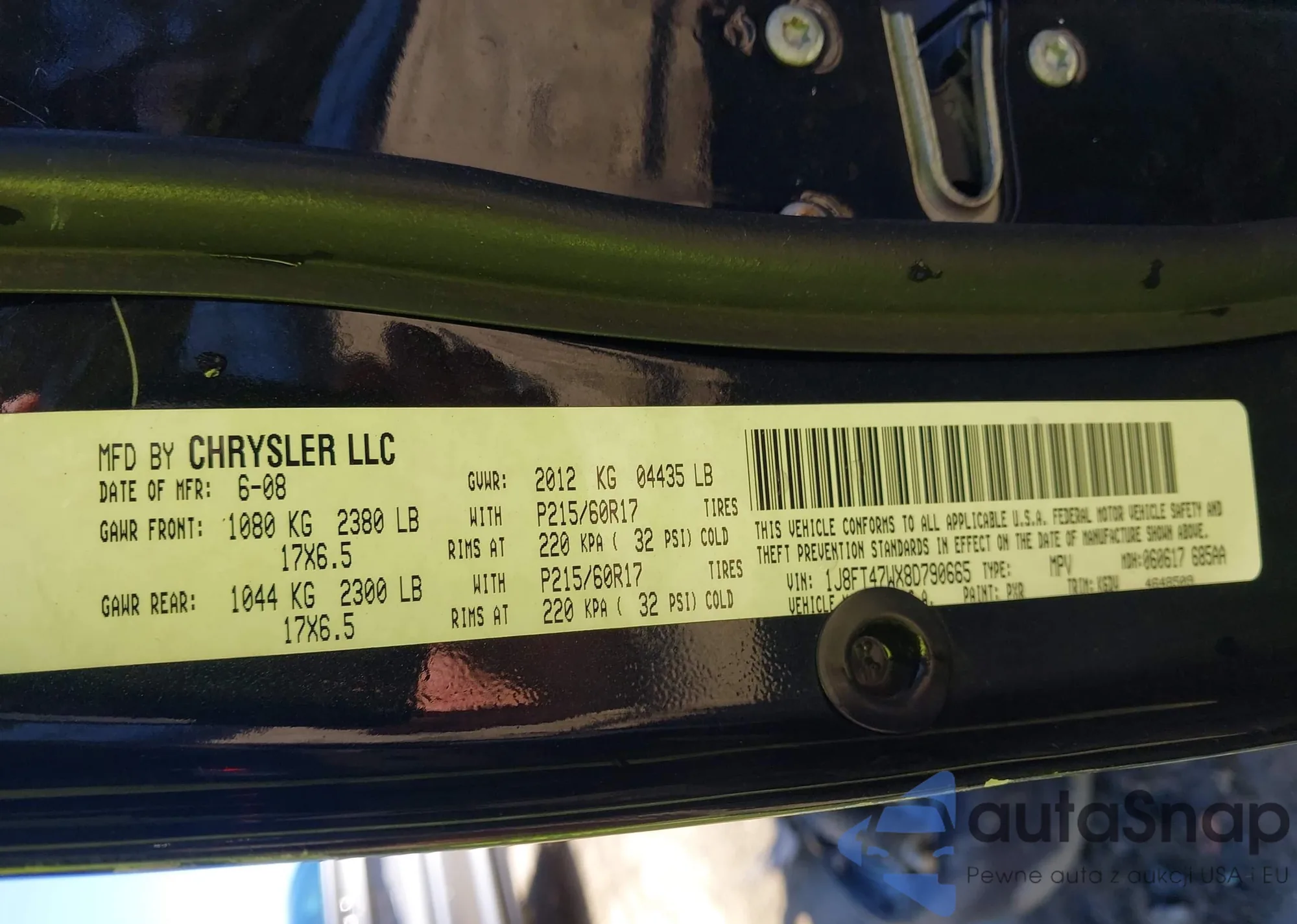• VIN 1J8FT47WX8D790665