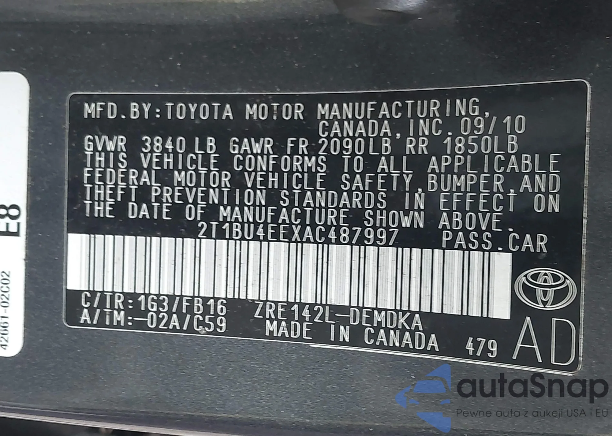 • VIN 4T1BE32K92U578261