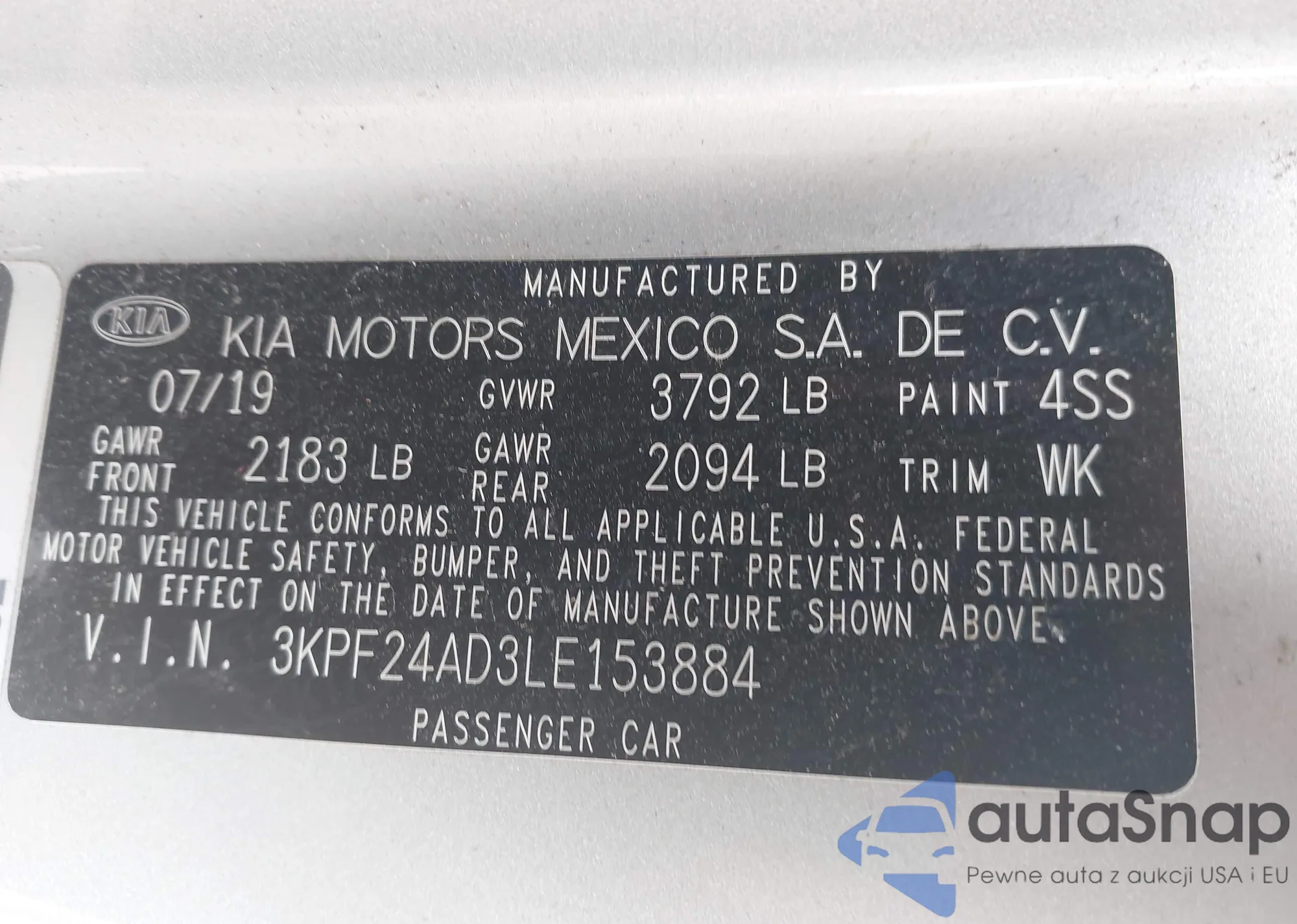 • VIN 3KPF24AD3LE153884