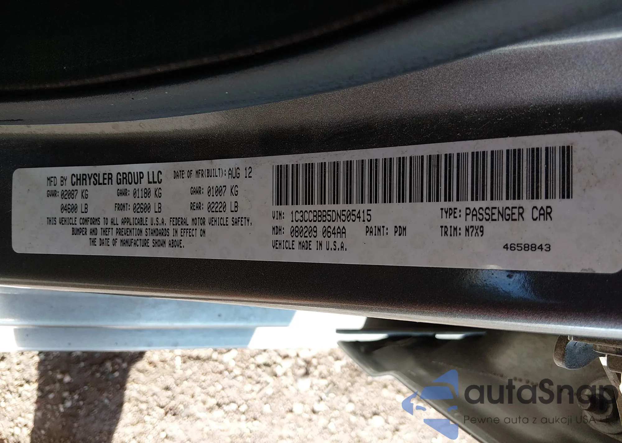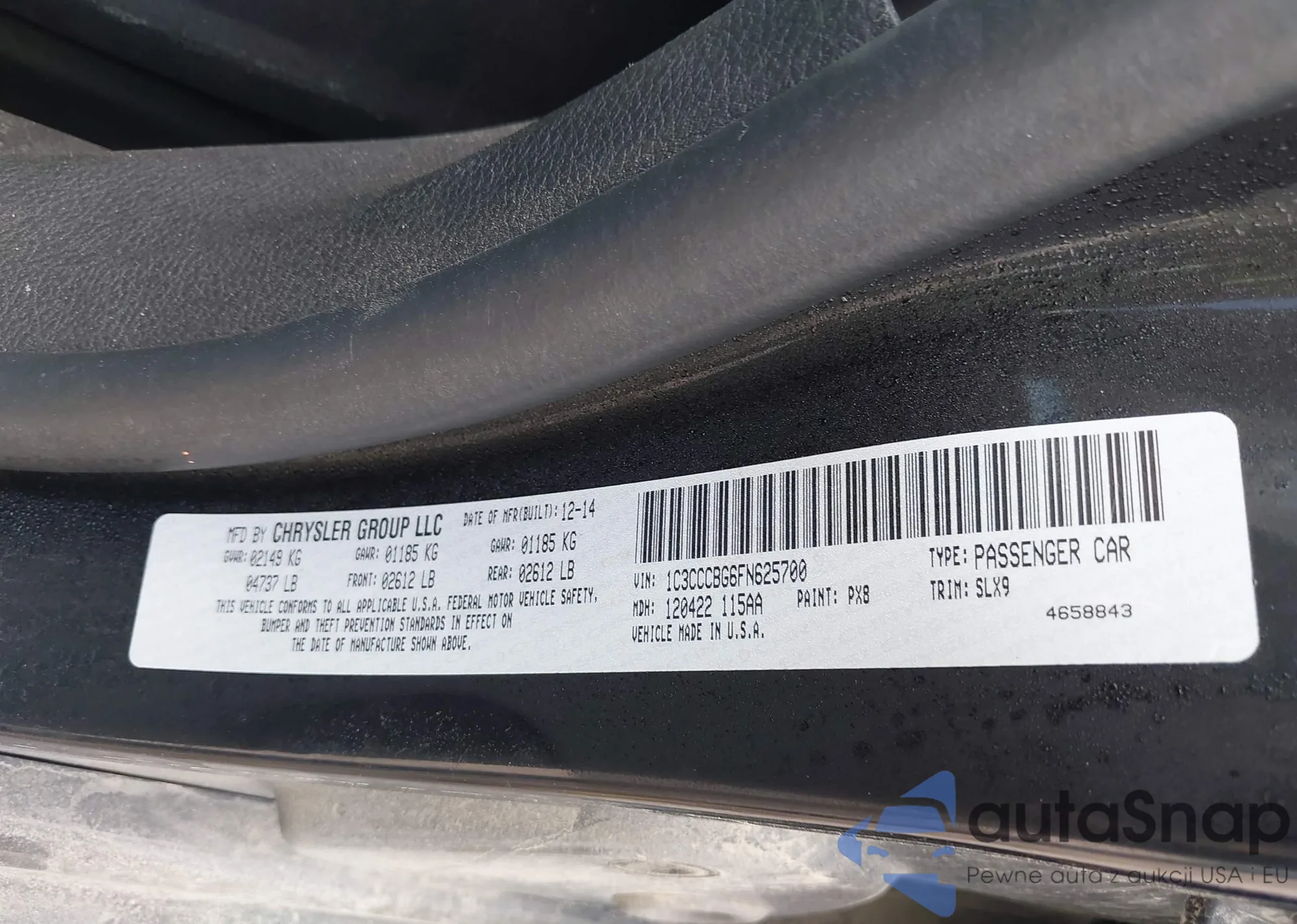 LOT: 43275525 VIN: 1C3CCCBG6FN625700