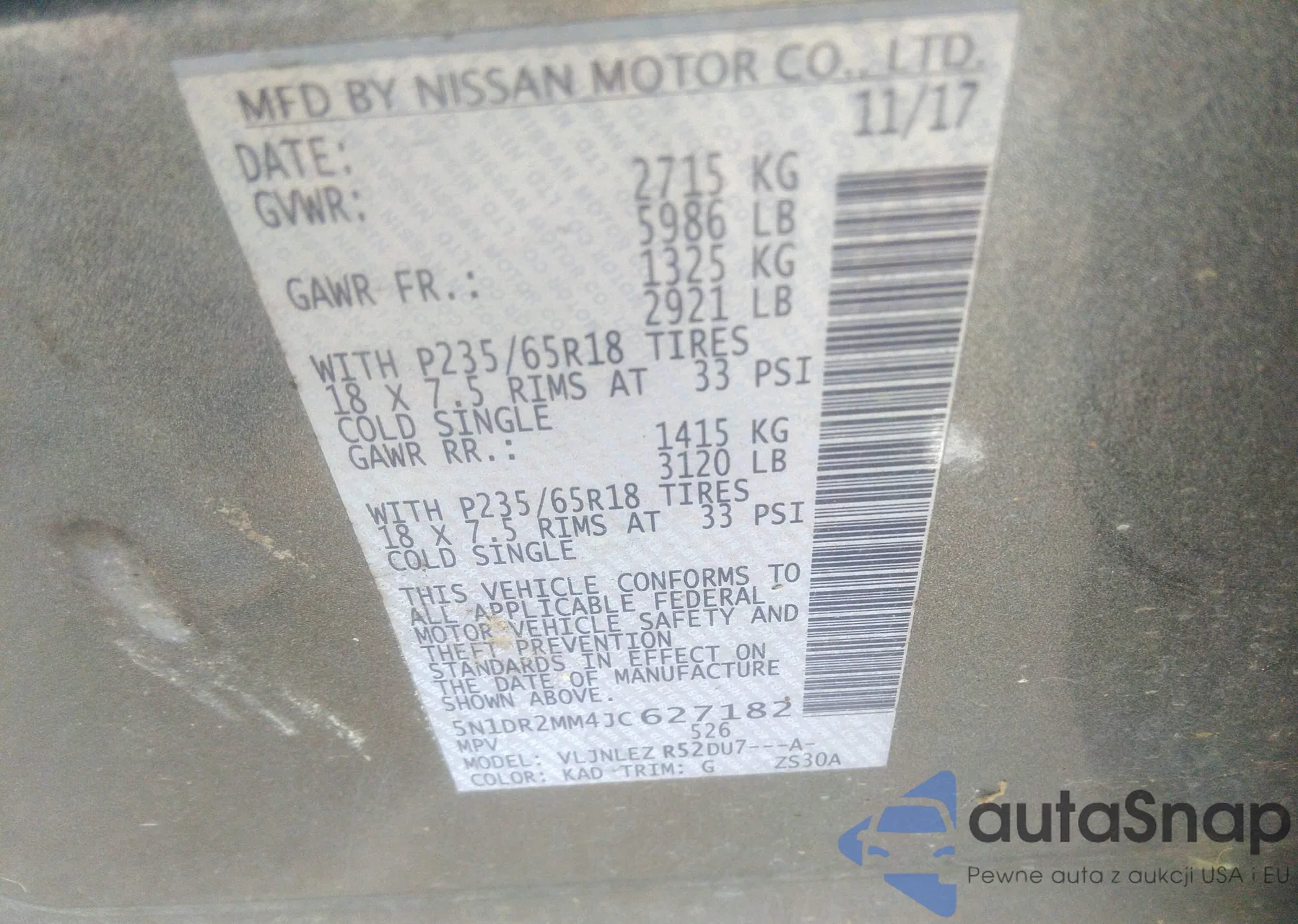 • VIN 5N1DR2MM4JC627182