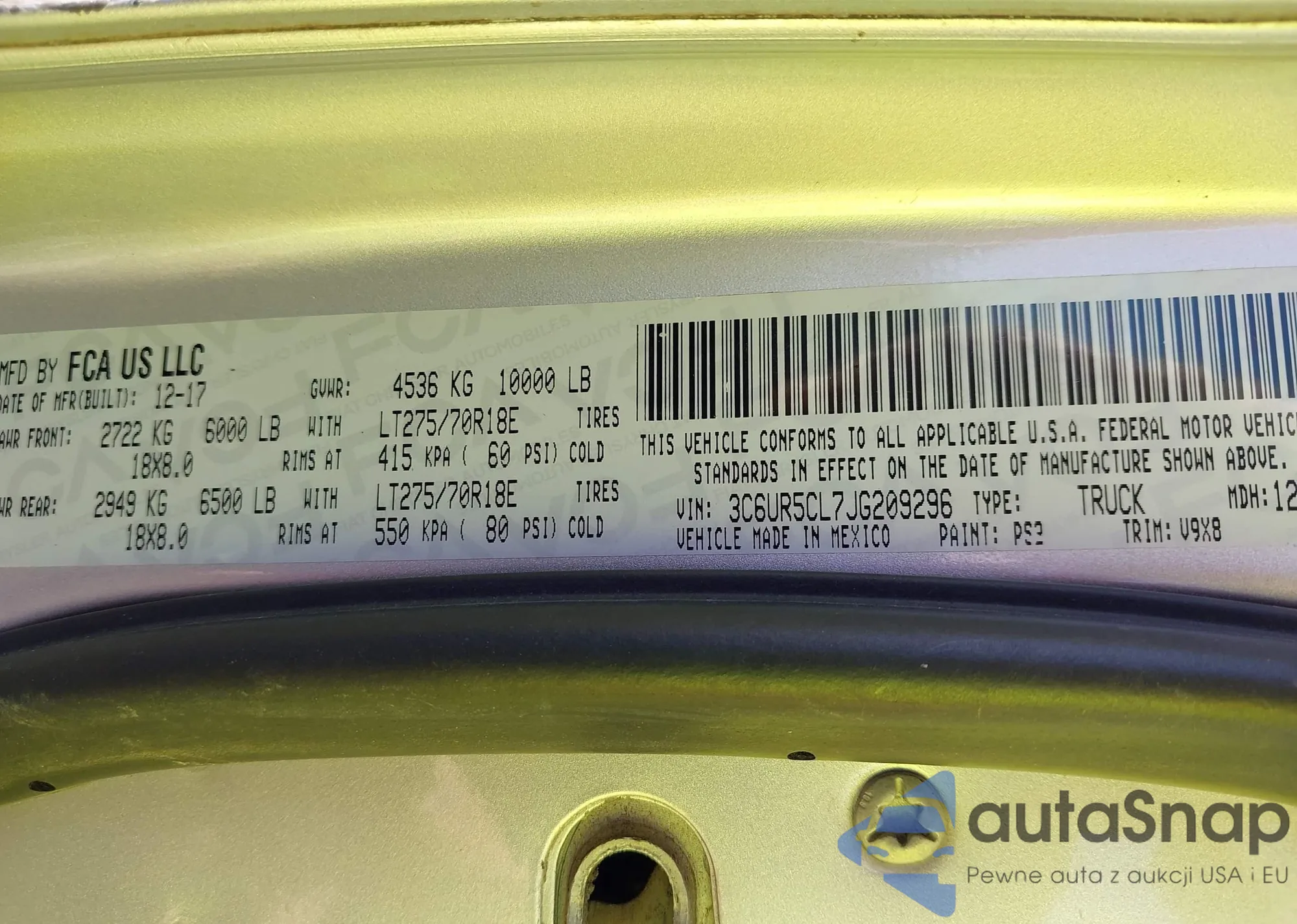 LOT: 43280593 VIN: 5N1DR2MM4JC627182