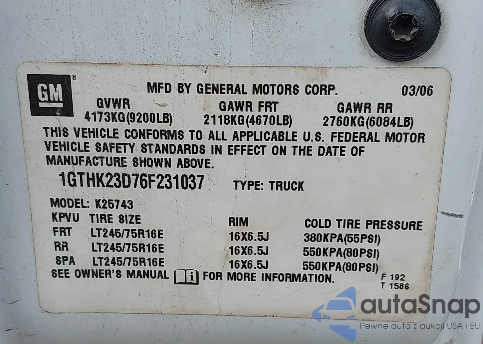 • VIN 1GTHK23D76F231037