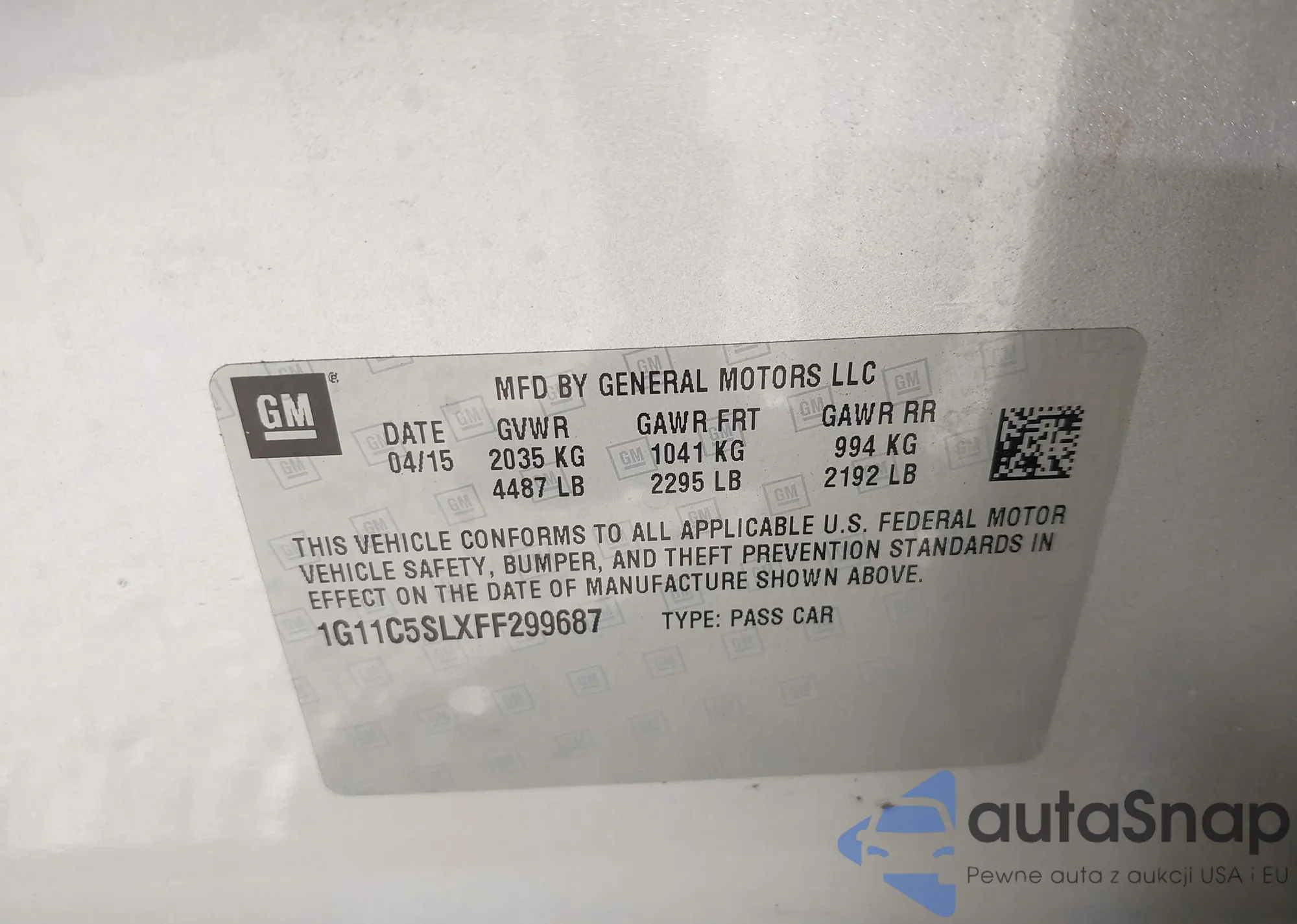LOT: 43472309 VIN: 2G1WC5E32C1213552