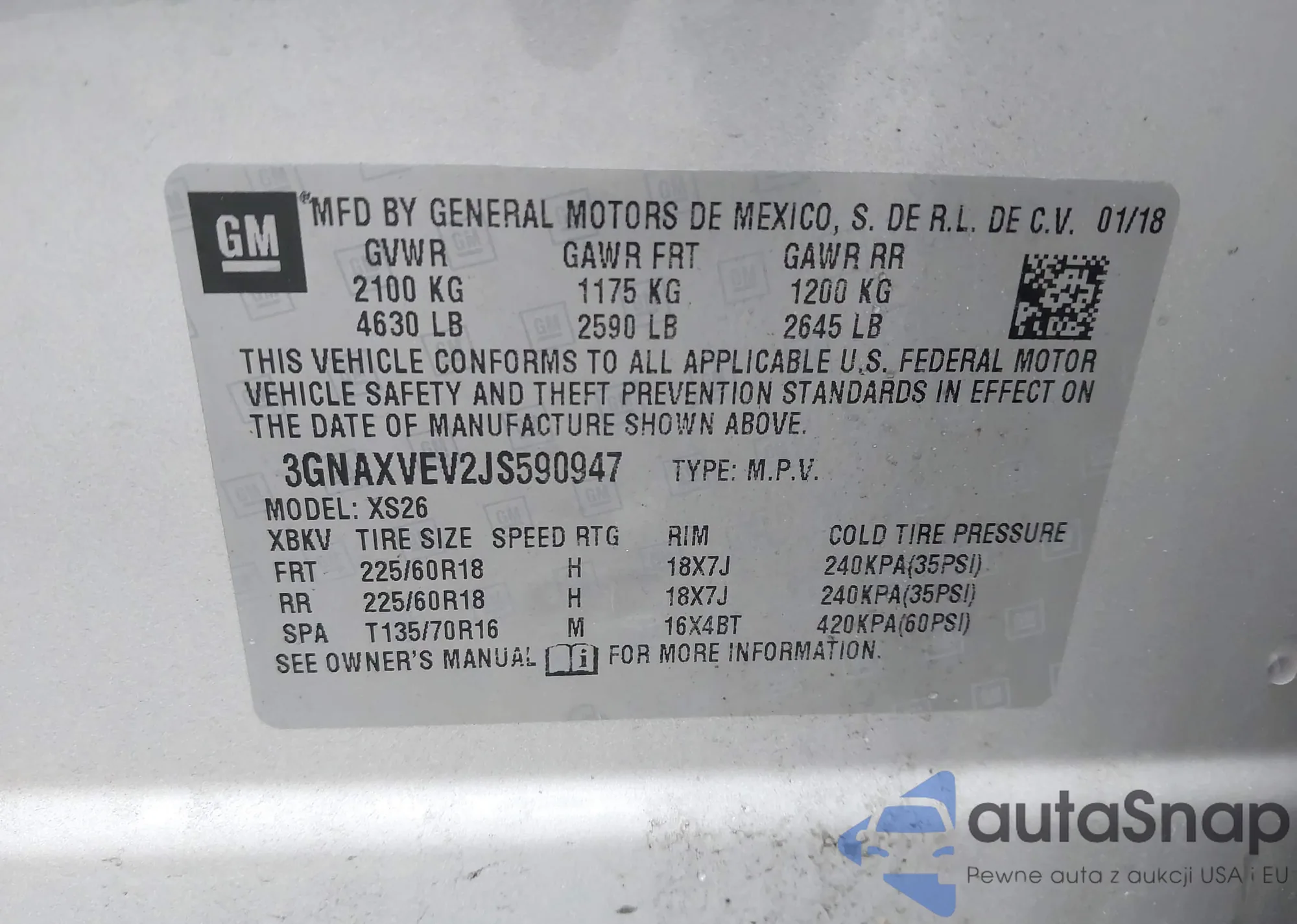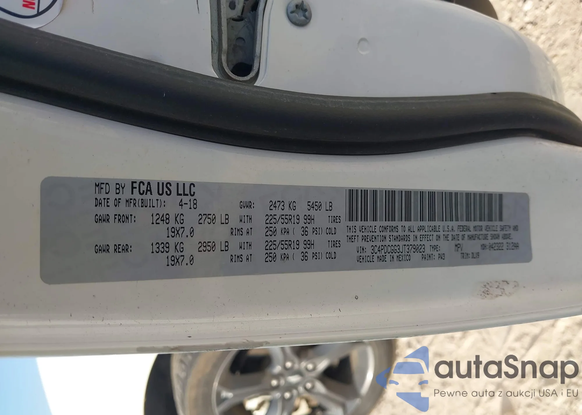 LOT: 43217728 VIN: 3C4PDCGG3JT379023