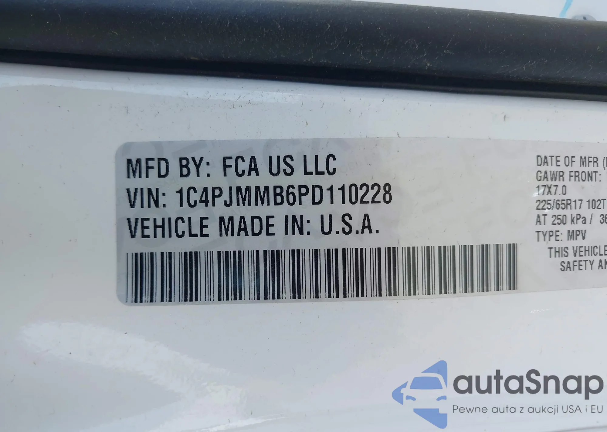 • VIN 1C4PJMMB6PD110228