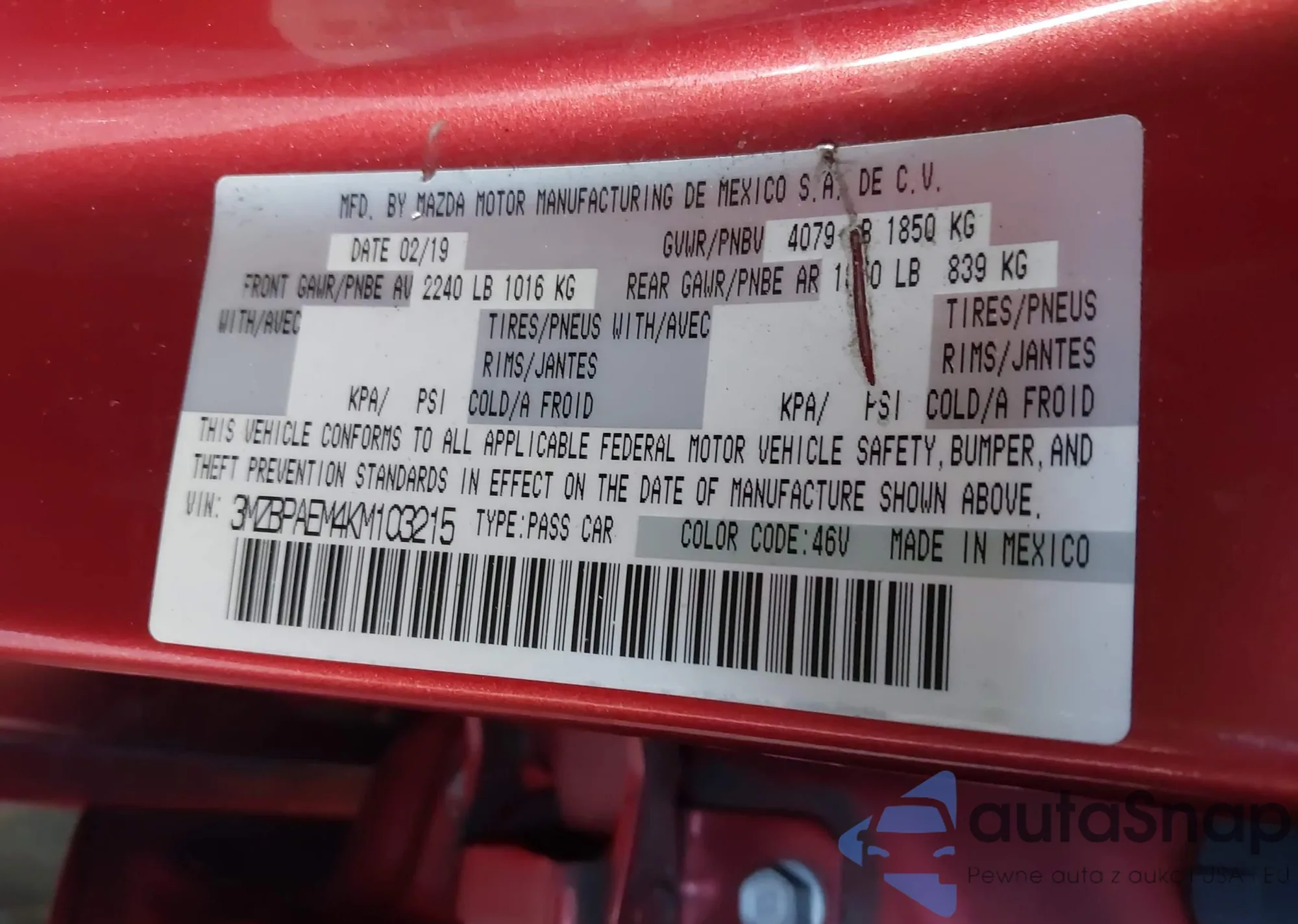 • VIN 3MZBPAEM4KM103215