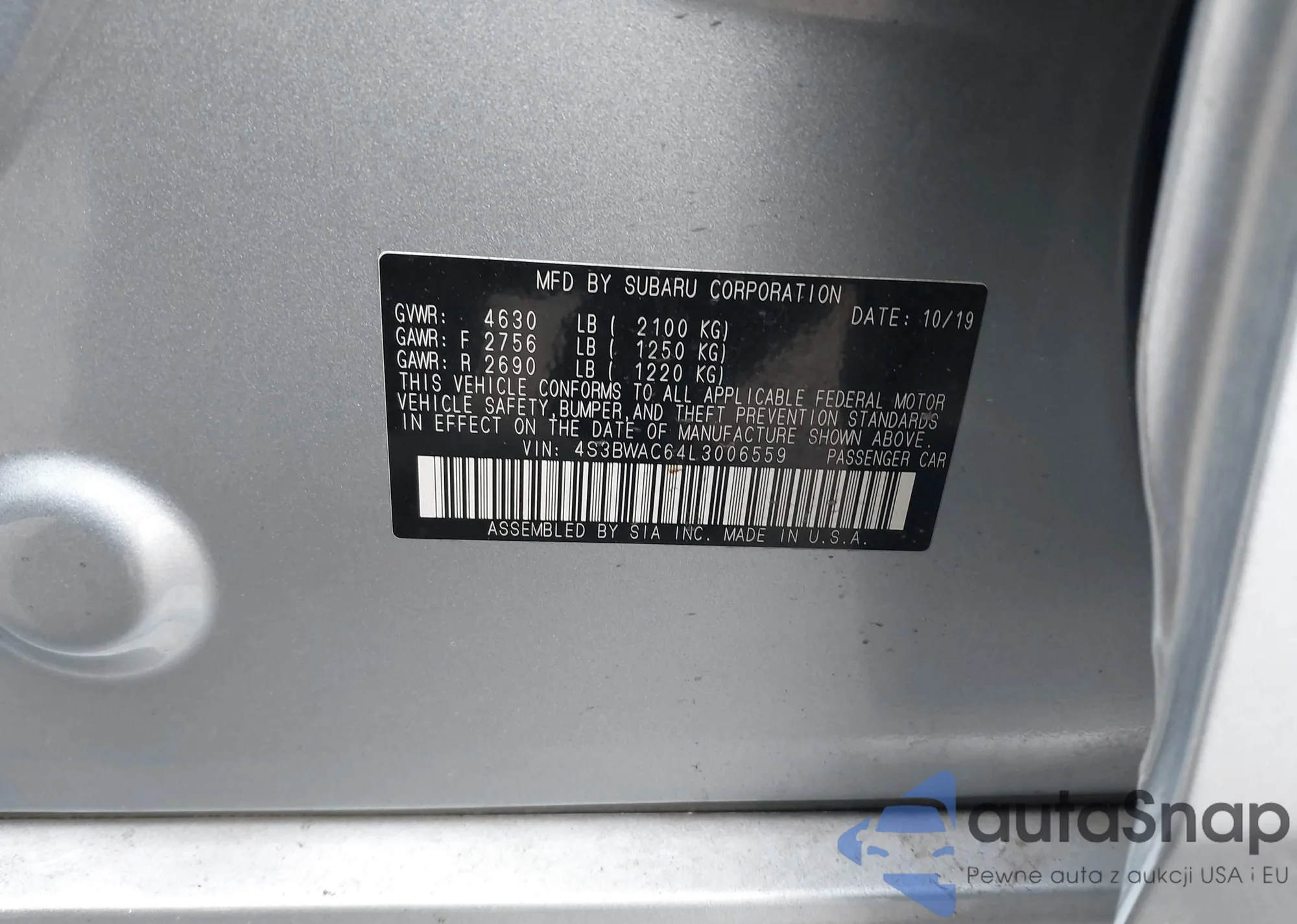 • VIN 4S3BWAC64L3006559