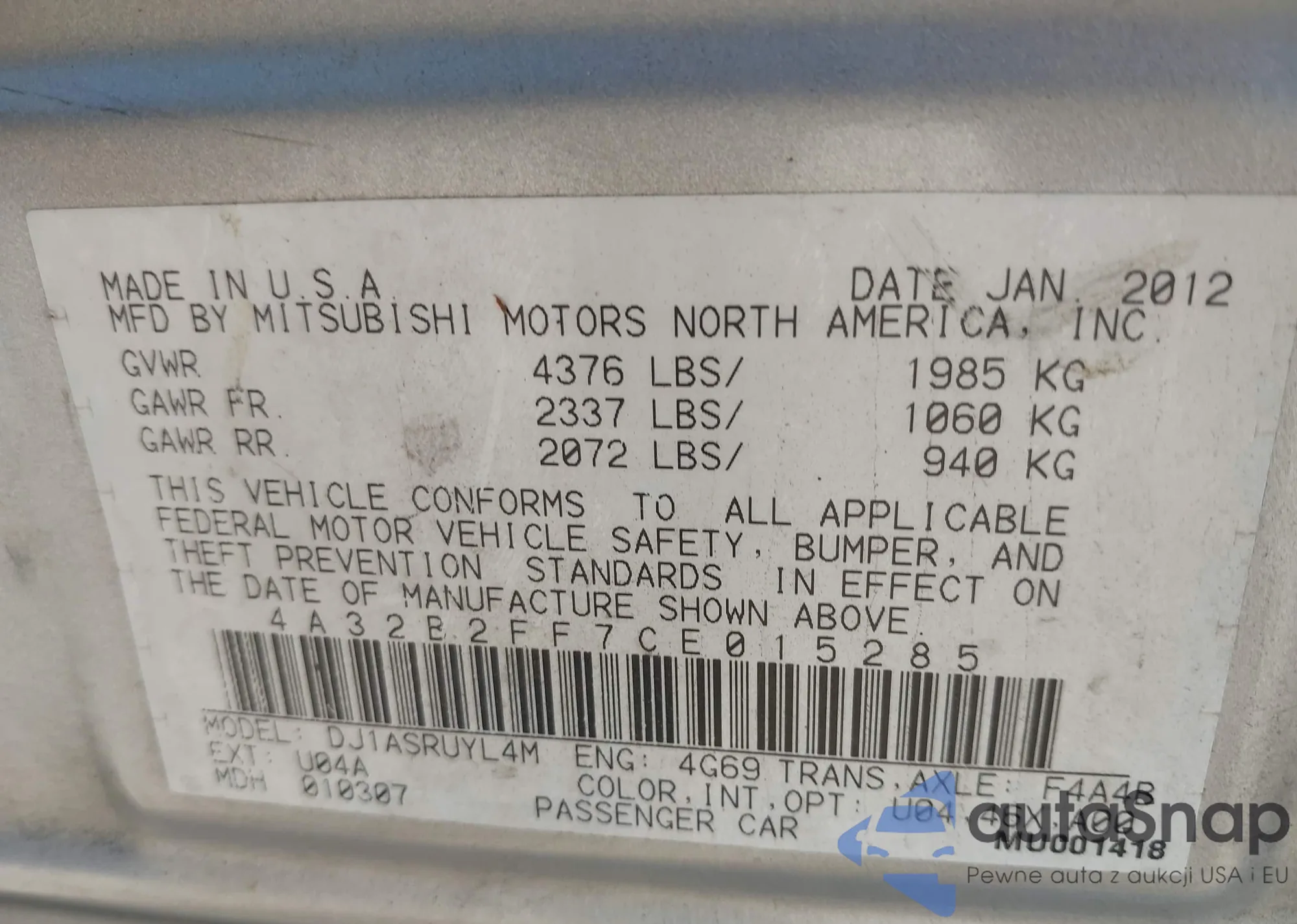 LOT: 43584868 VIN: 4A32B2FF7CE015285
