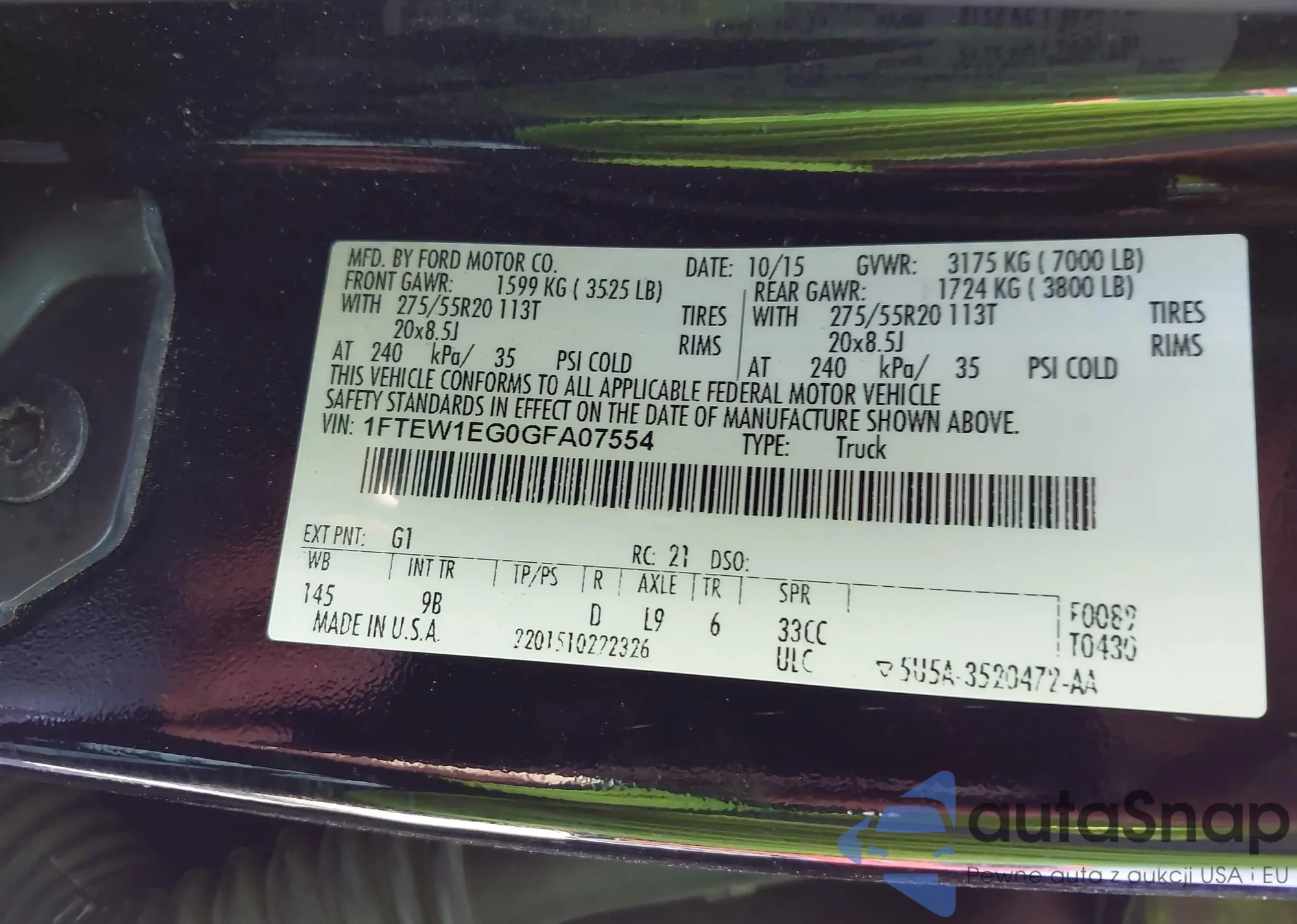 LOT: 43607097 VIN: 1FTEW1E88AFC88549