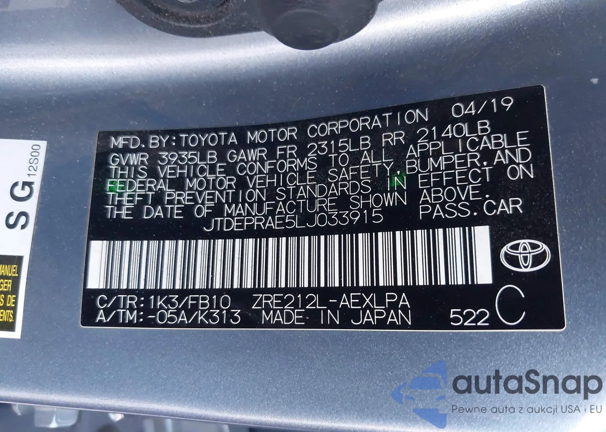 • VIN JTDEPRAE5LJ033915