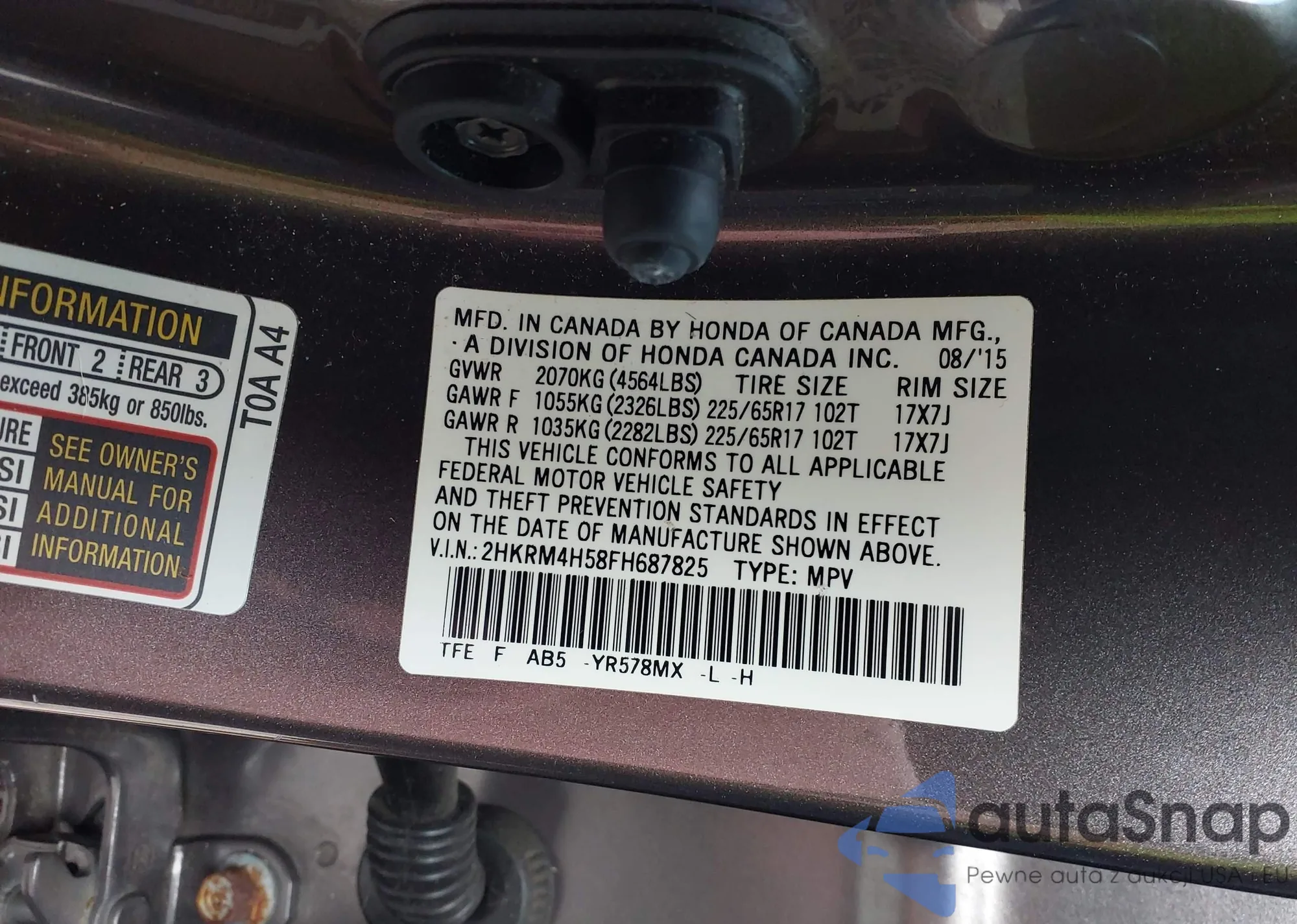 • VIN 2HKRM4H52EH638540