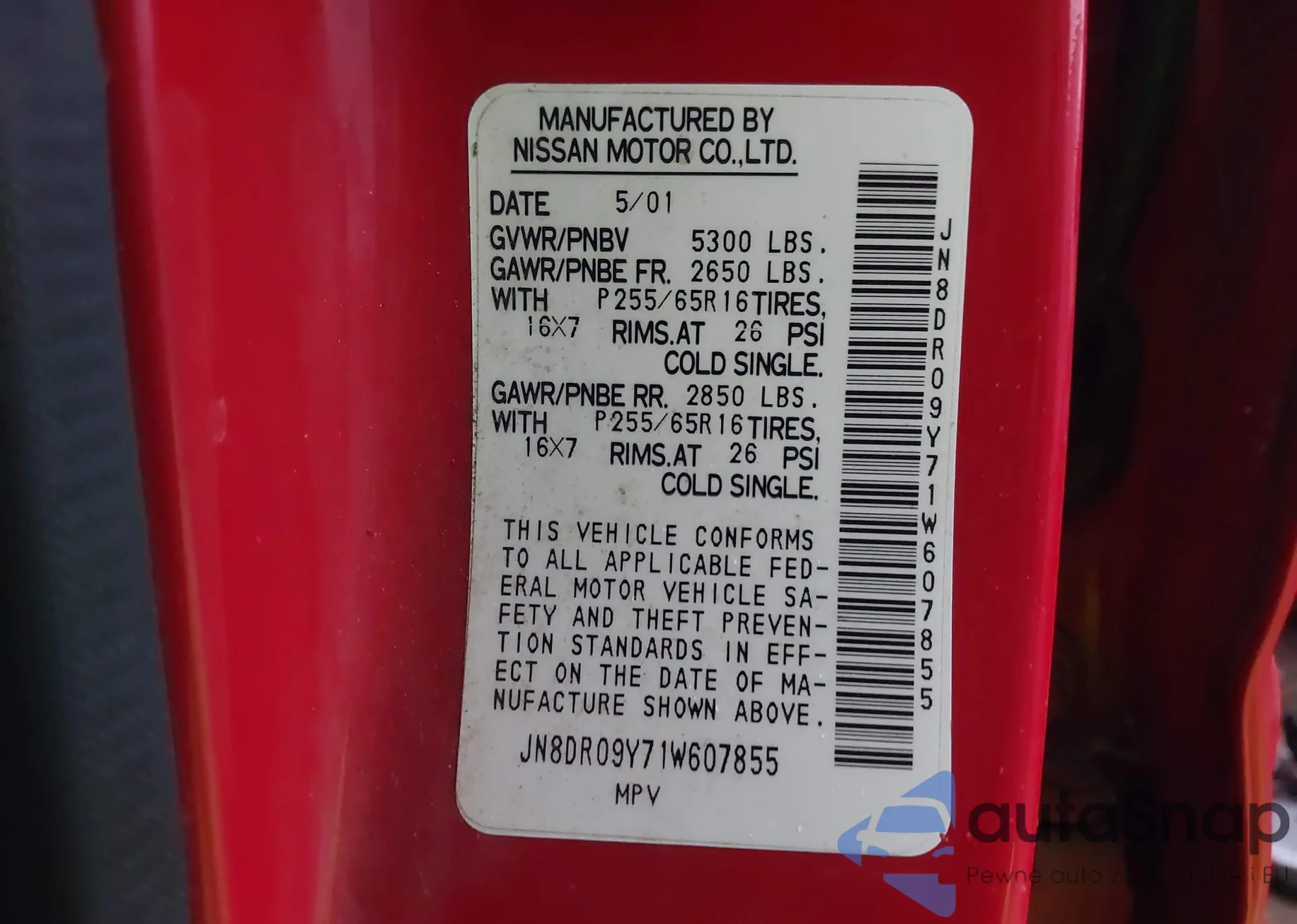 • VIN JN8DR09Y71W607855