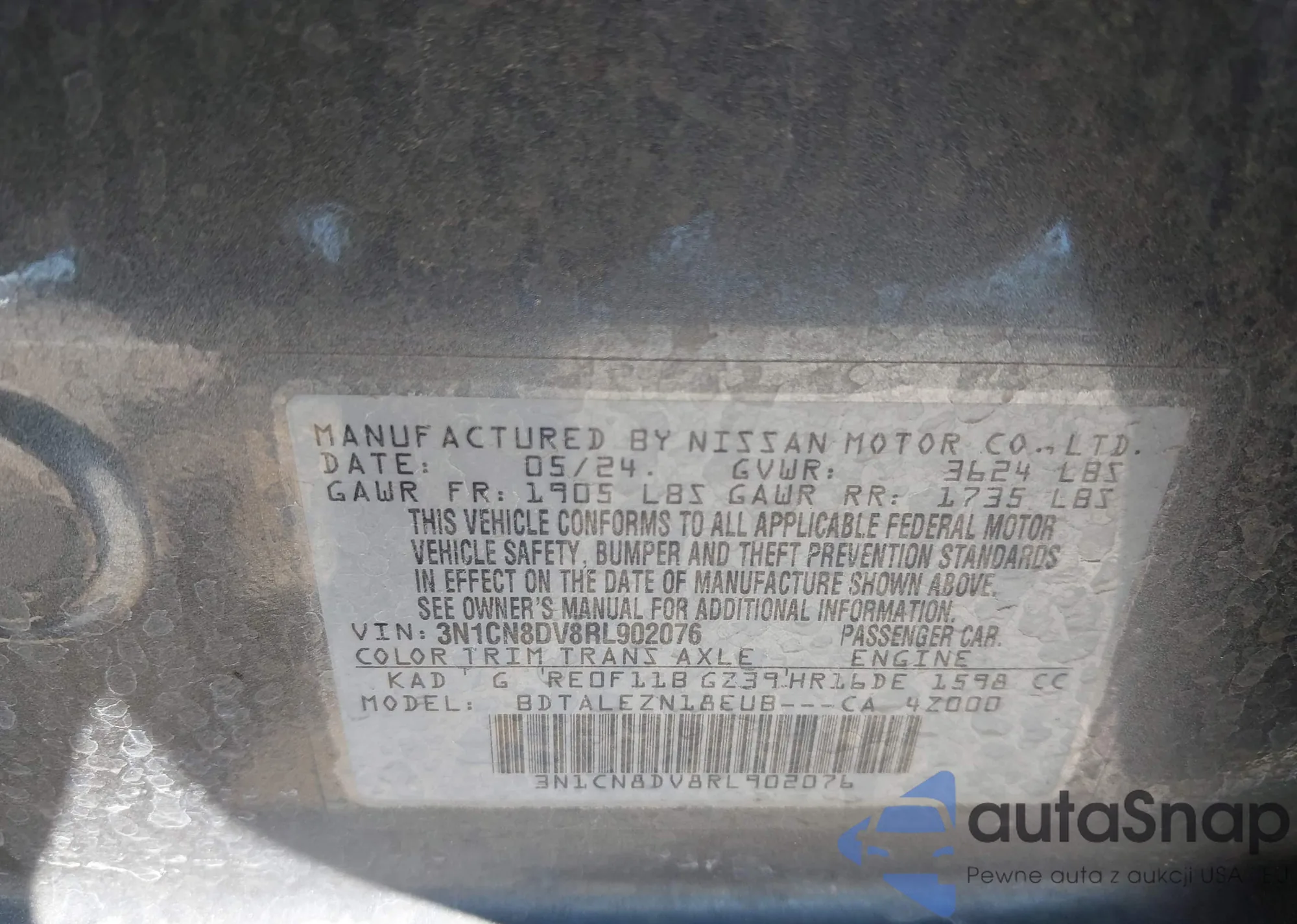 • VIN 3N1CN8DV8RL902076
