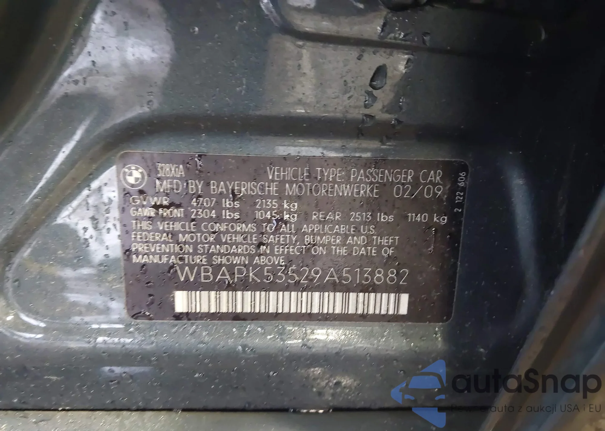 LOT: 41768255 VIN: WBAPK53529A513882