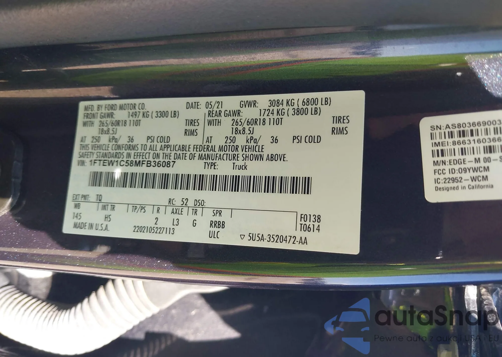 LOT: 43482763 VIN: 1FTEW1C58MFB36087