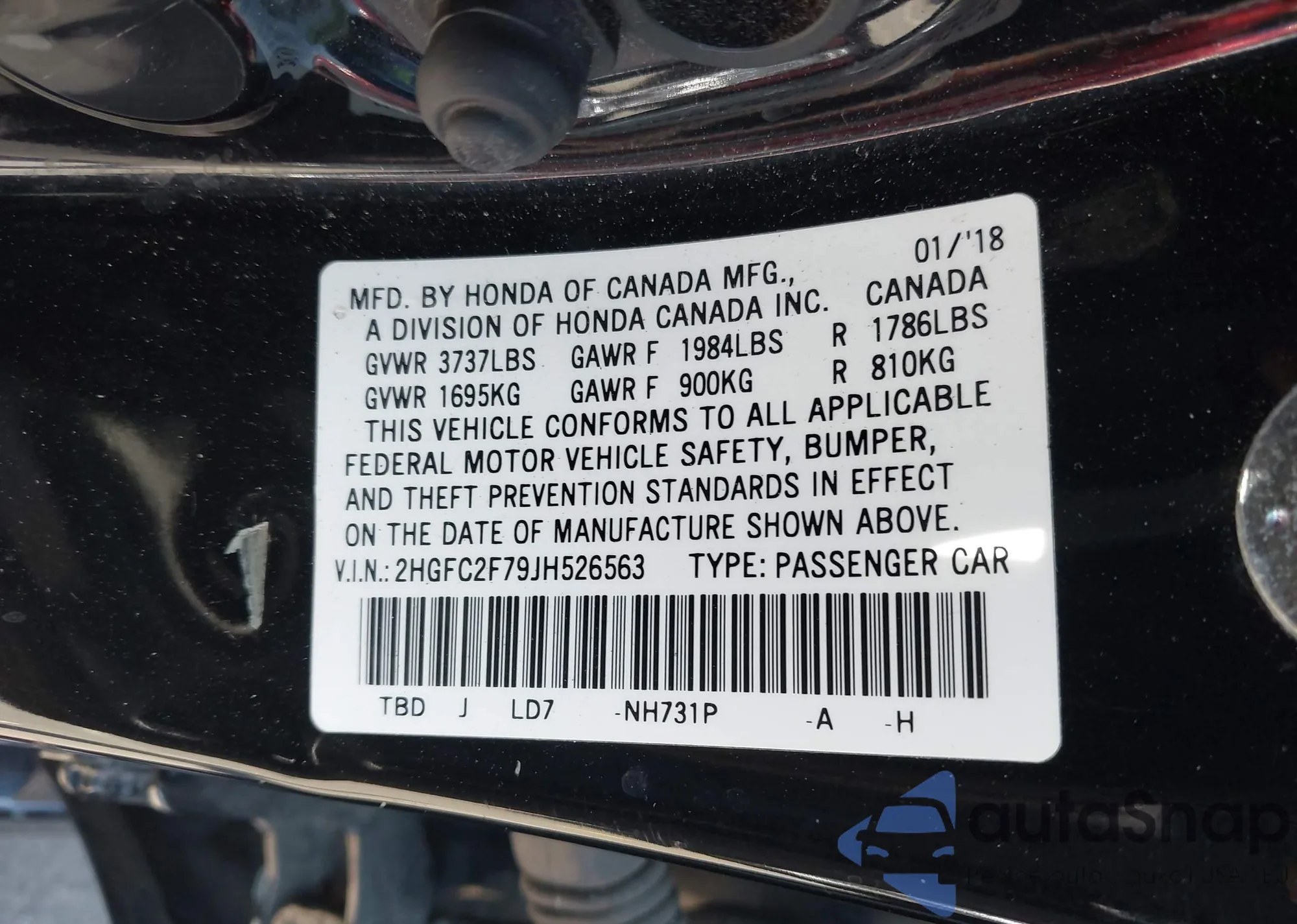 • VIN 2HGFC2F79JH526563