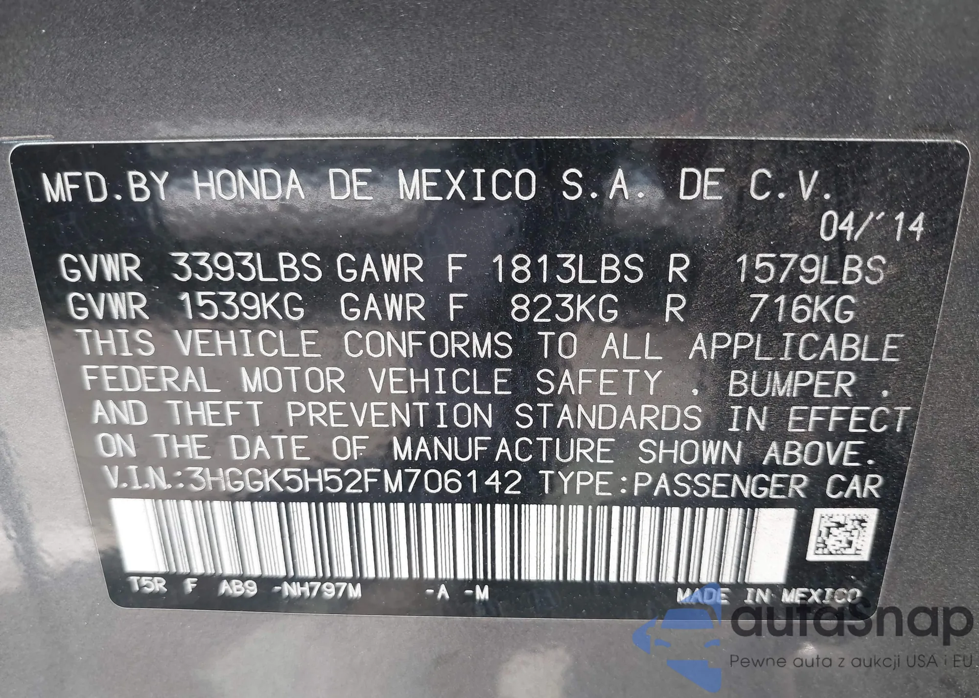 • VIN 3HGGK5H52FM706142