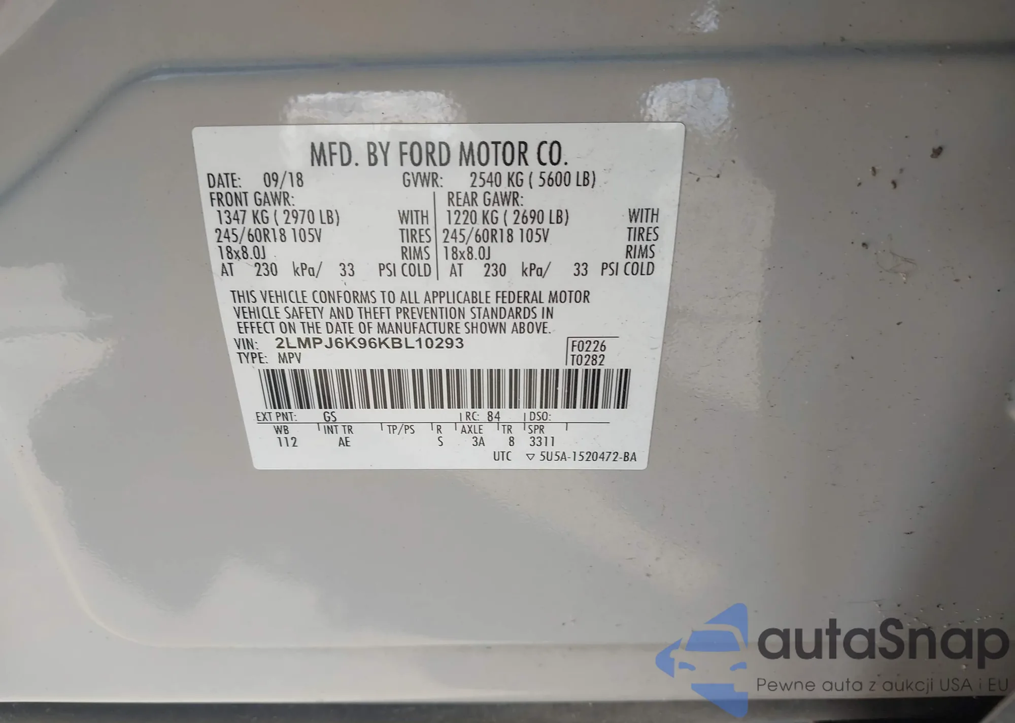 LOT: 43705577 VIN: 2LMPJ6K96KBL10293