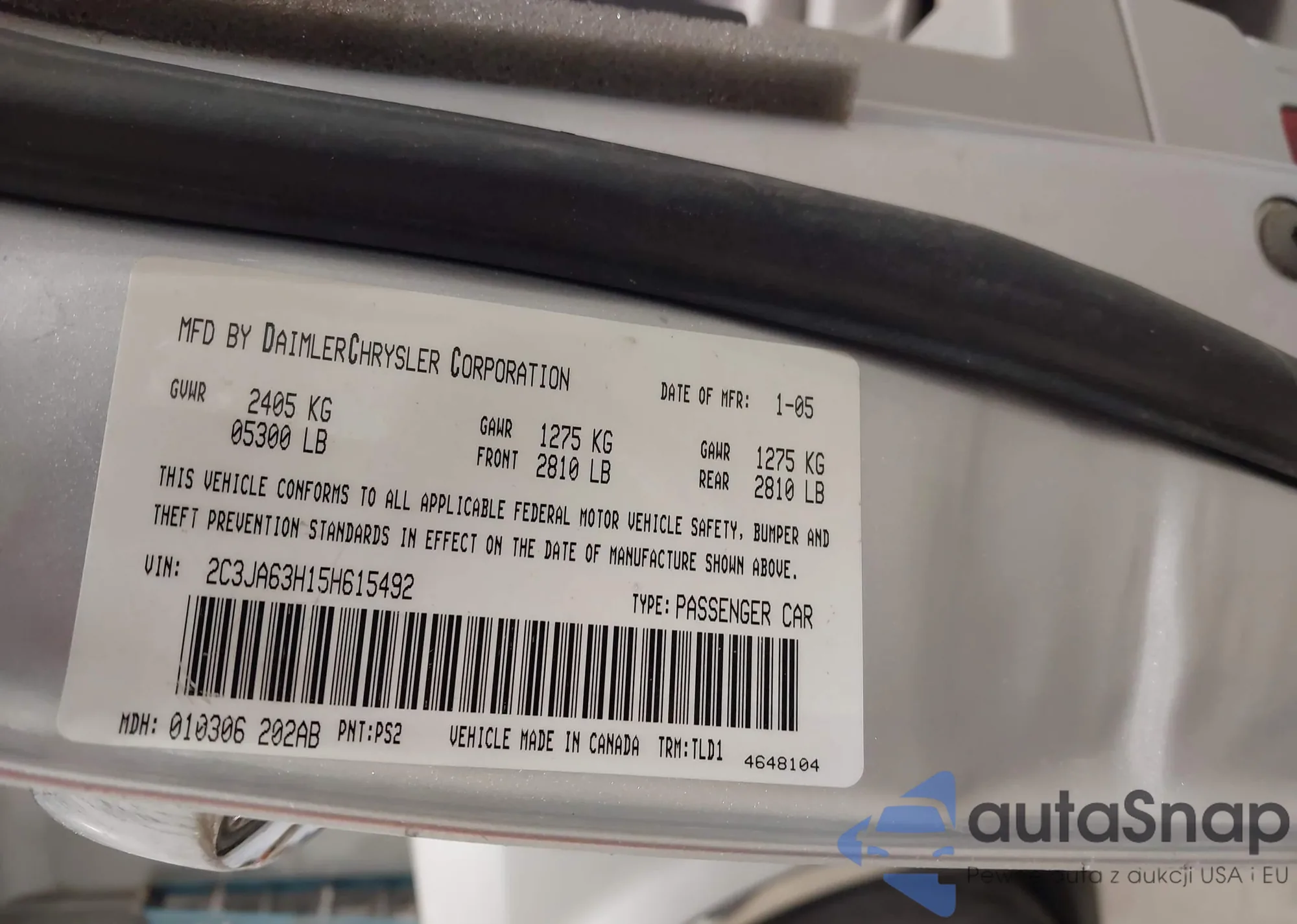 • VIN 2C3JA63H15H615492