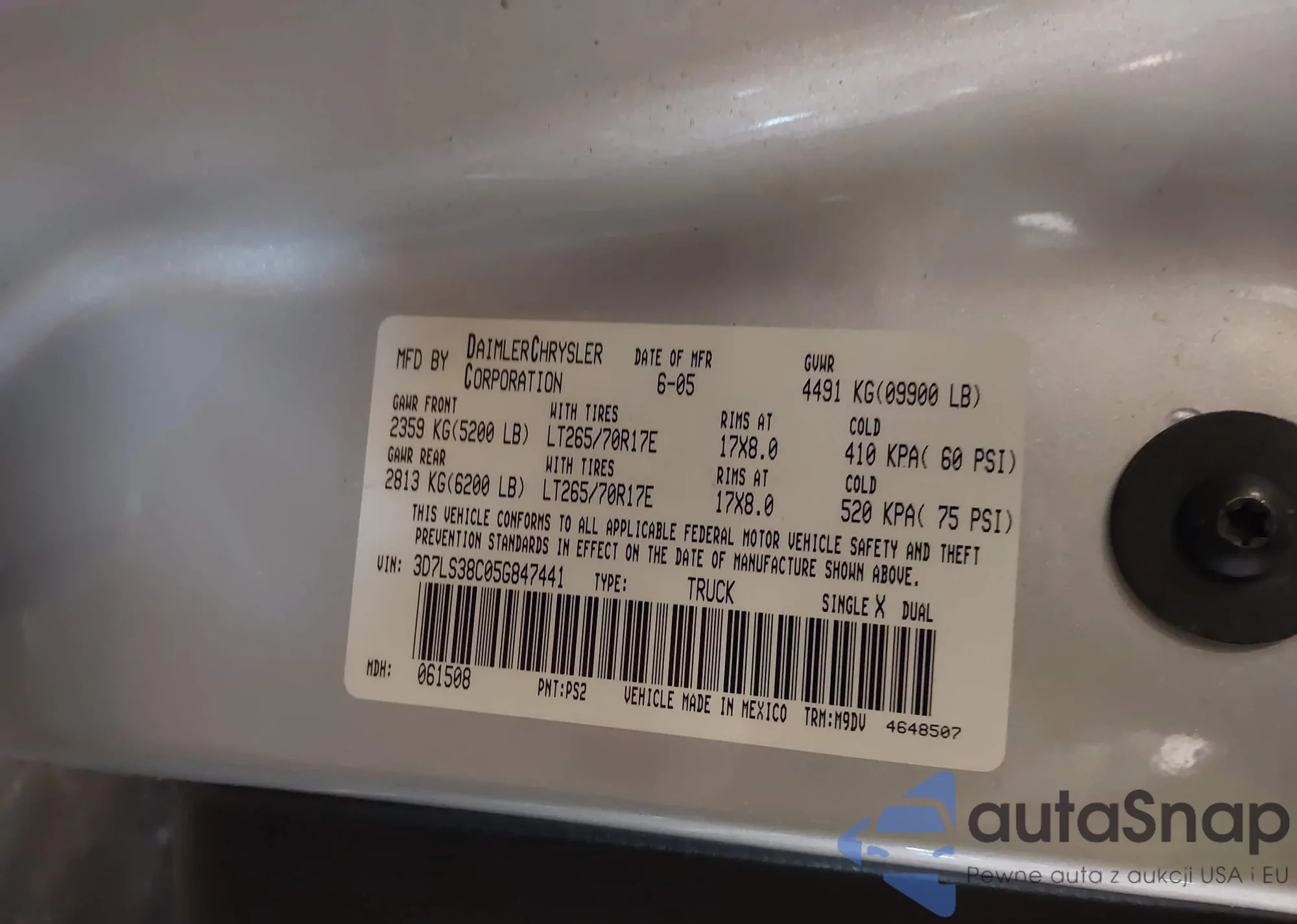 LOT: 43356463 VIN: KL1TD56617B175860