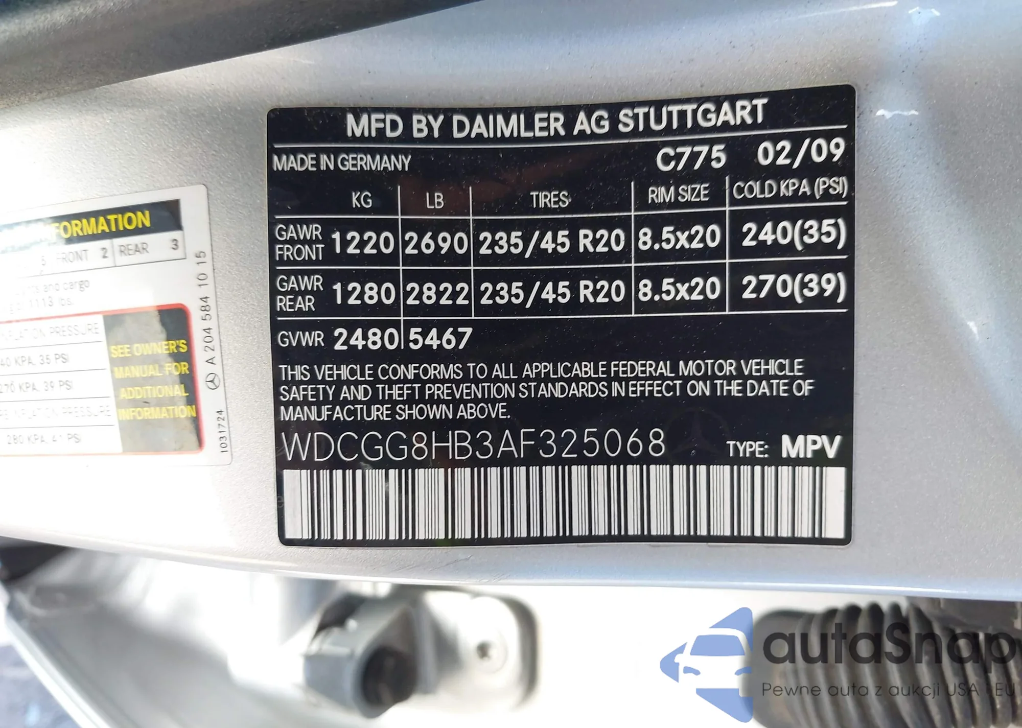 • VIN WDCGG8HB3AF325068
