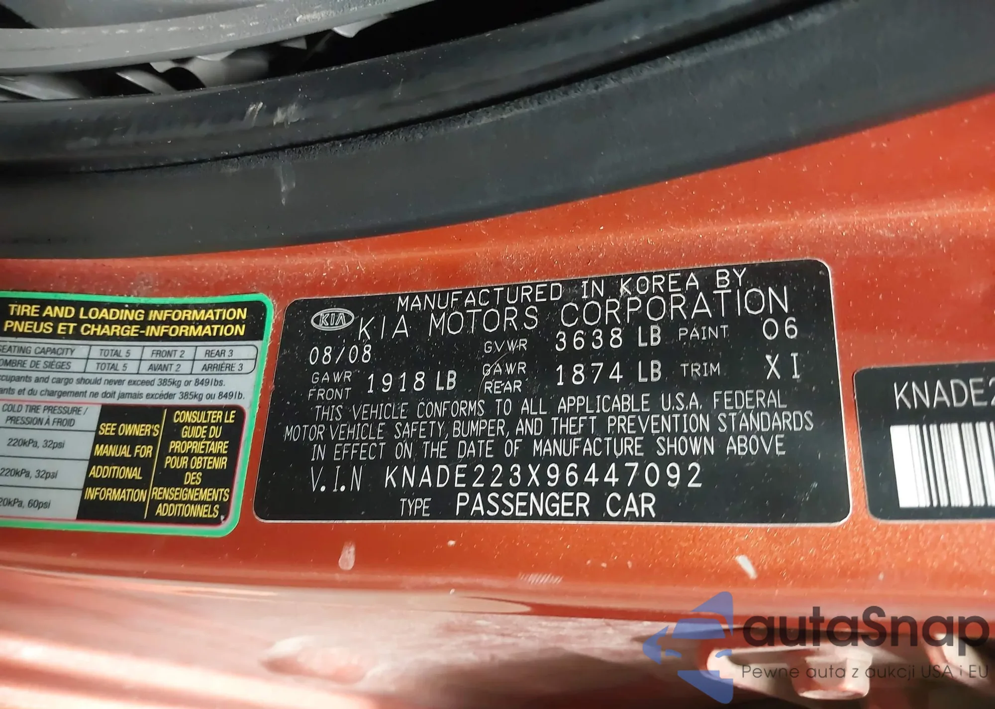 • VIN KNADE223X96447092