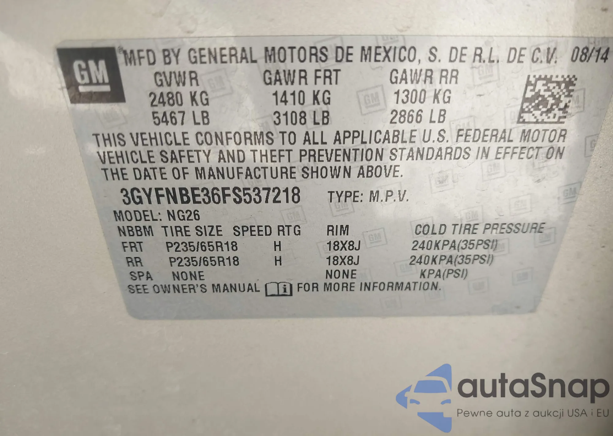 • VIN 3GYFNBE36FS537218