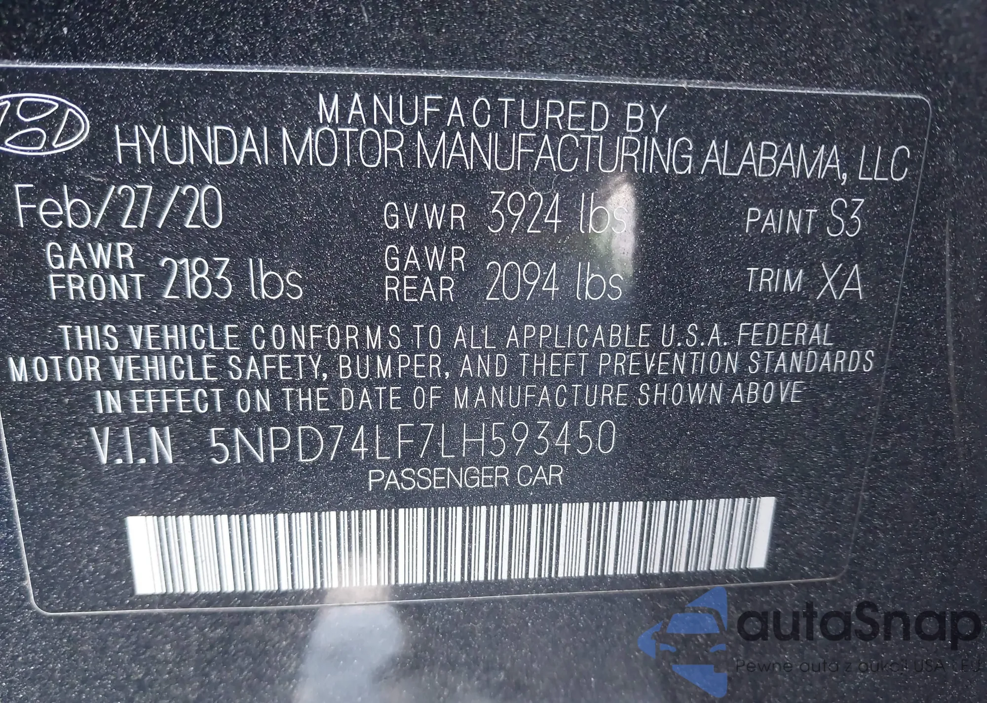 • VIN 5NPD74LF7LH593450
