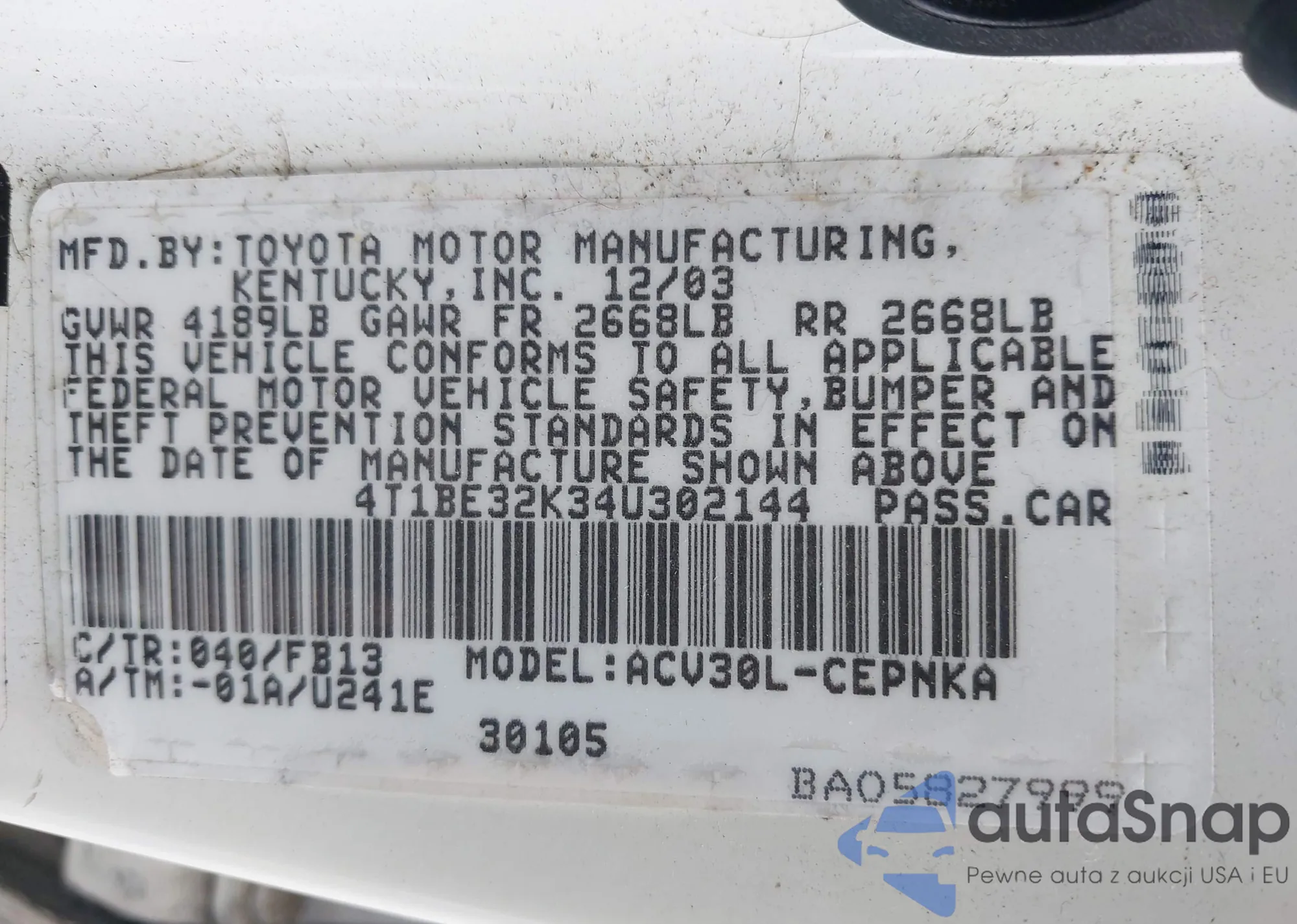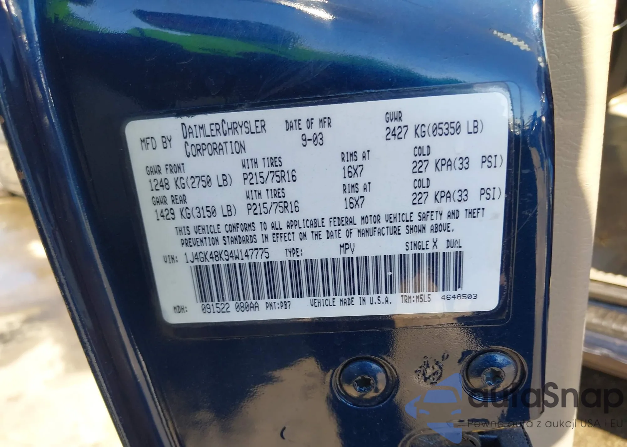 LOT: 43514928 VIN: 1J4GK48K94W147775