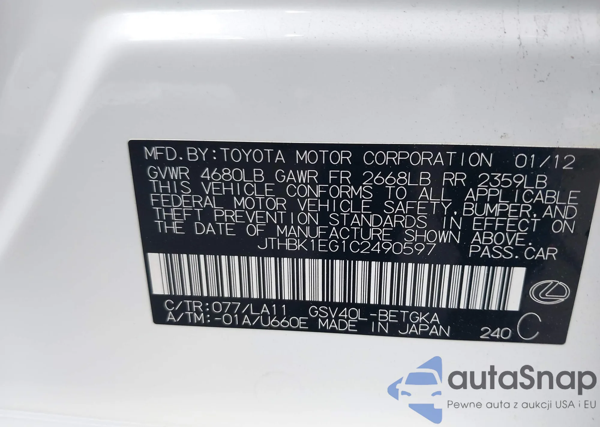 LOT: 43569723 VIN: 2T1BA02E0VC193066