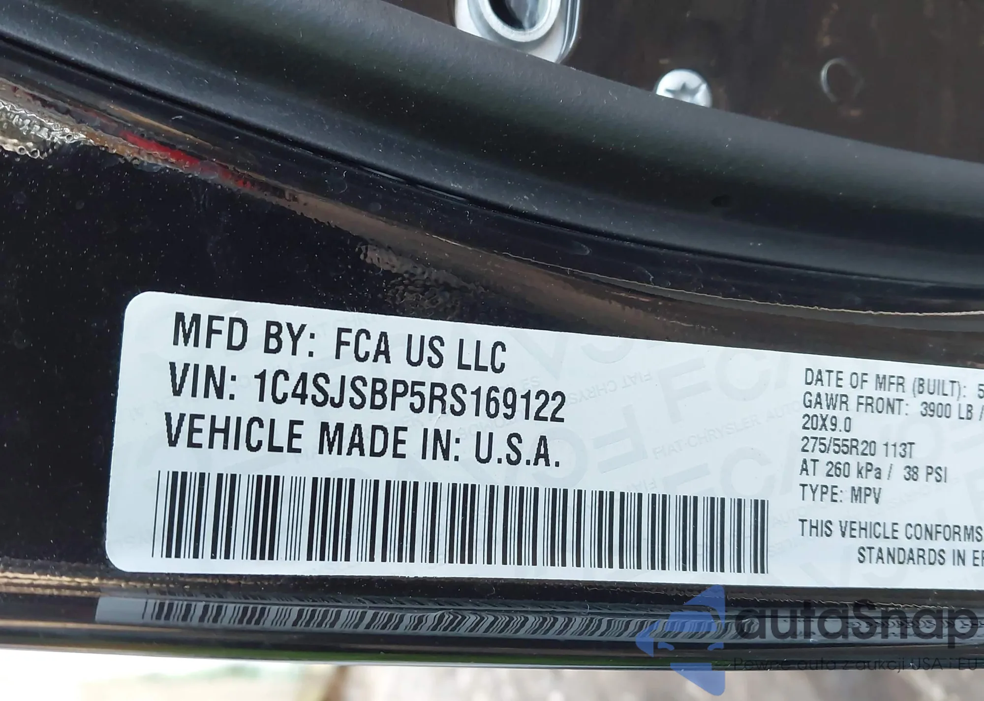 • VIN 1C4SJSBP5RS169122