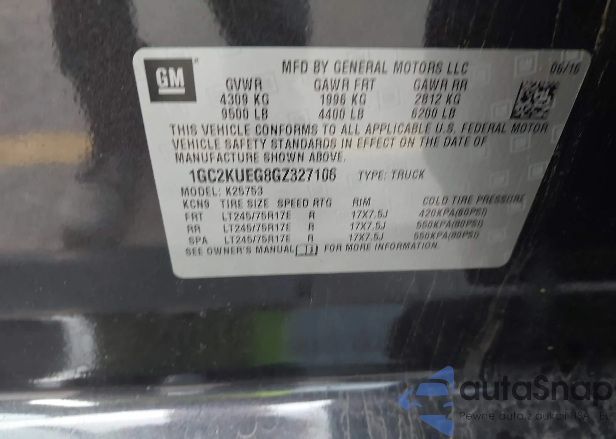 • VIN 1GC2KUEG8GZ327106