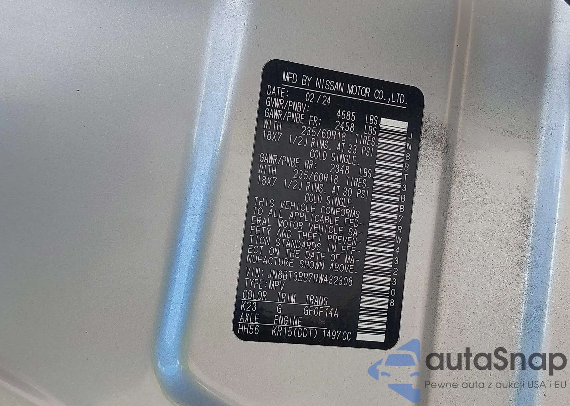 LOT: 43761453 VIN: JN8BT3BB7RW432308
