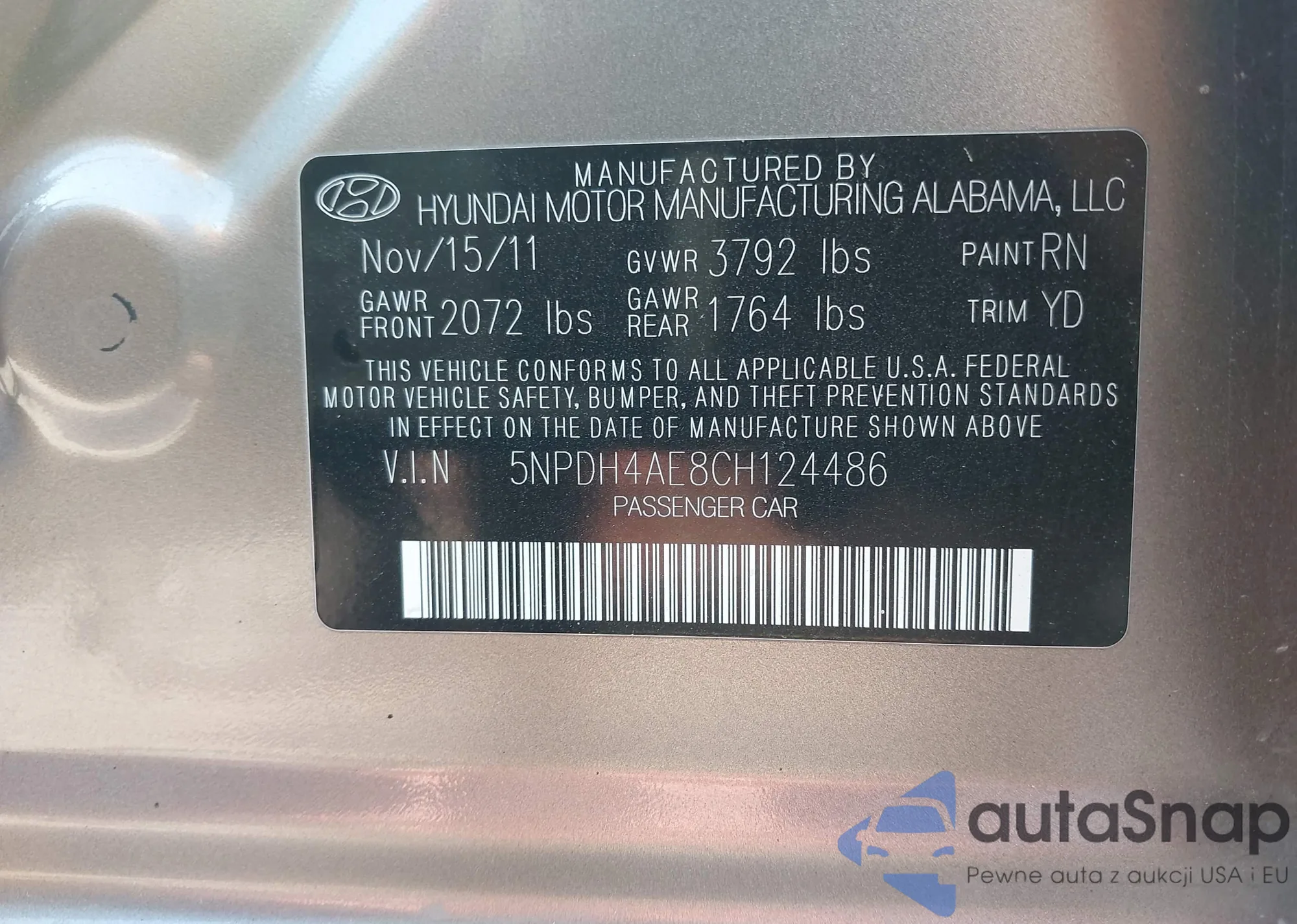 • VIN 5NPDH4AE8CH124486