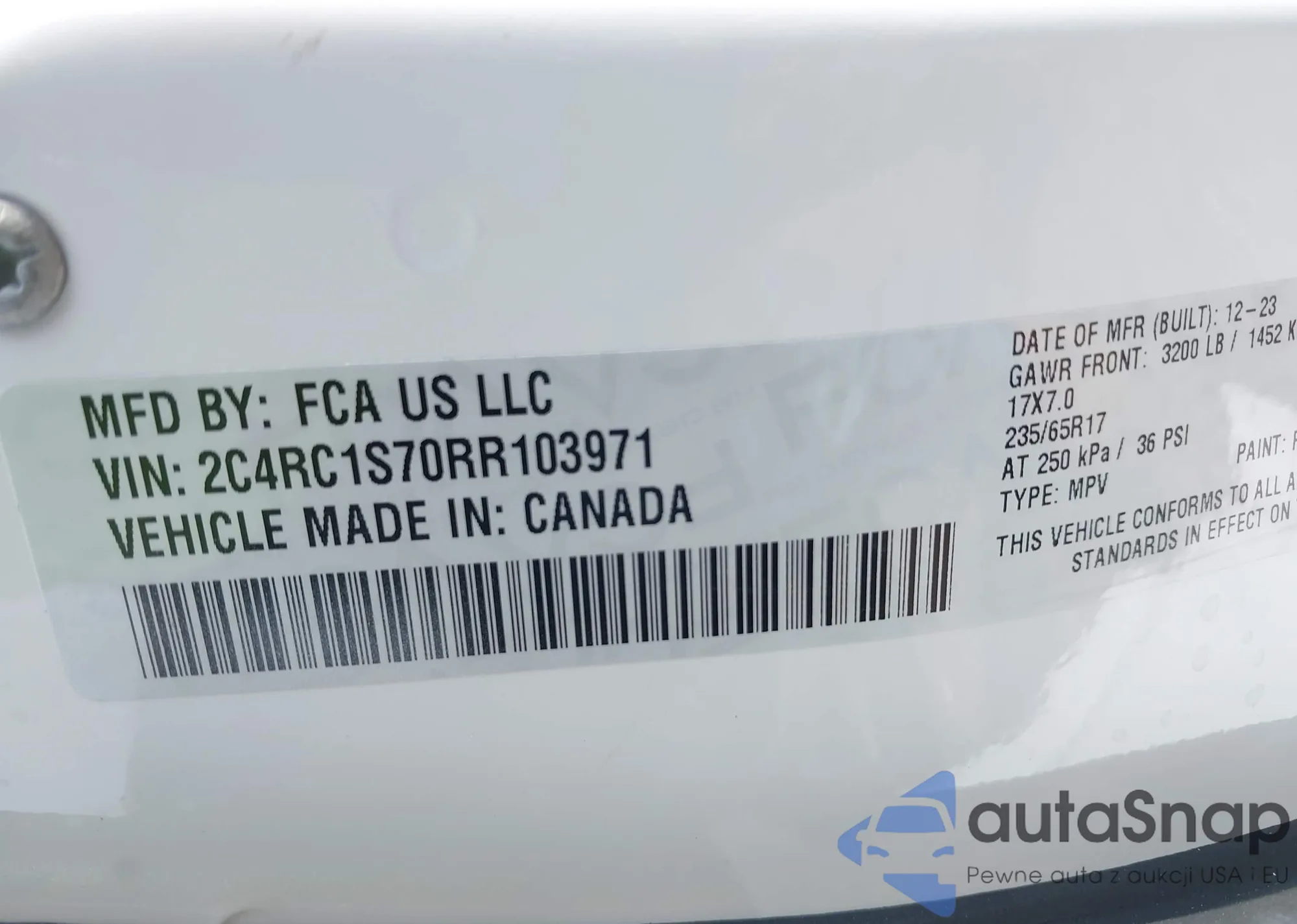 • VIN 2C4RC1S70RR103971