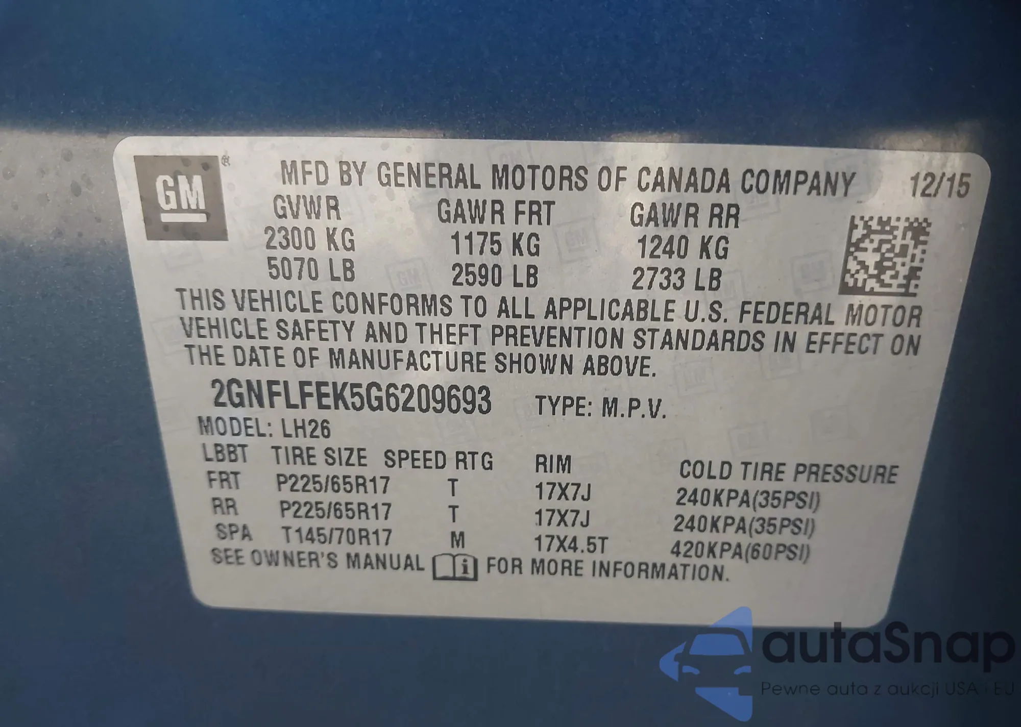 • VIN 2G1WG5E39C1258735