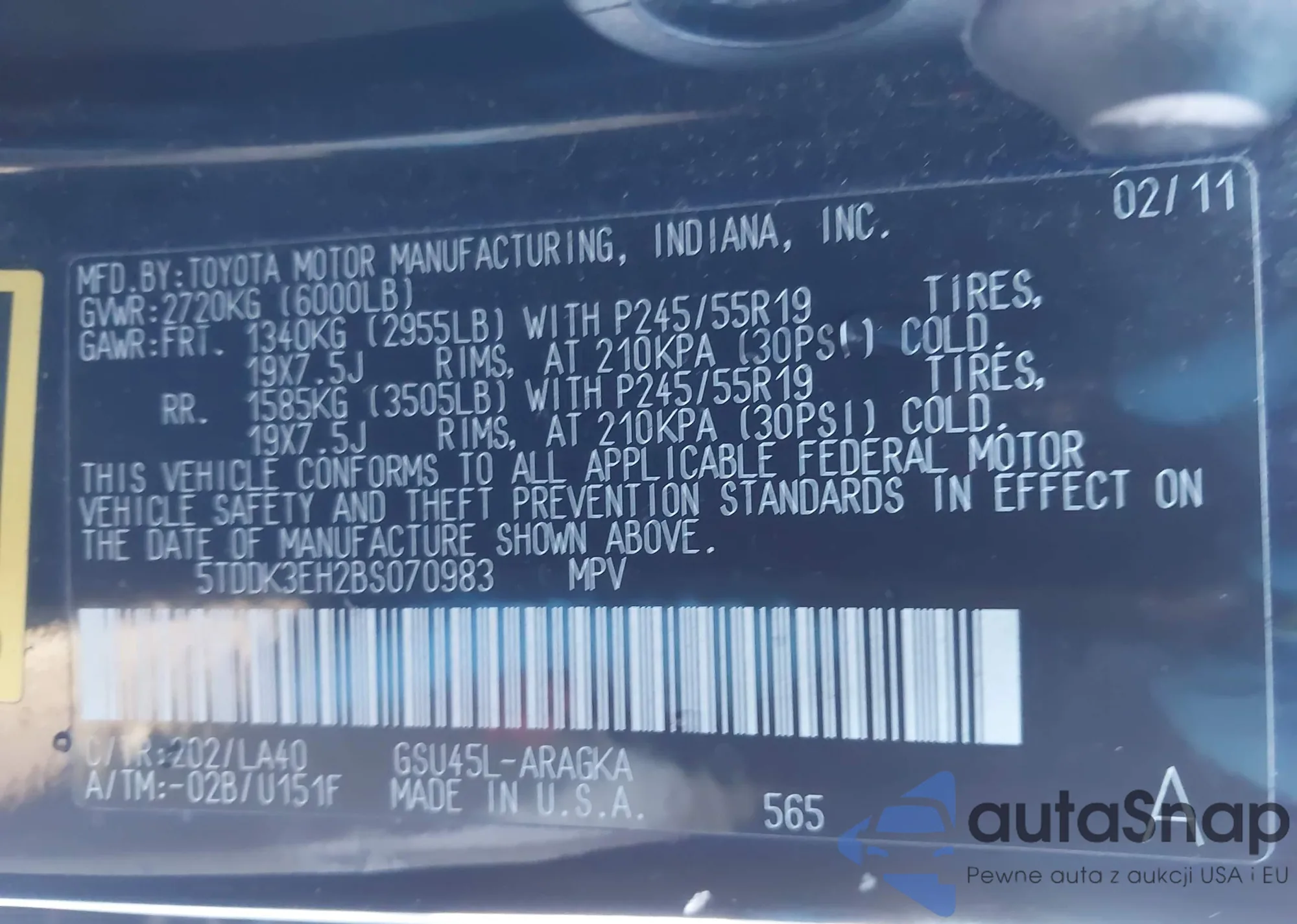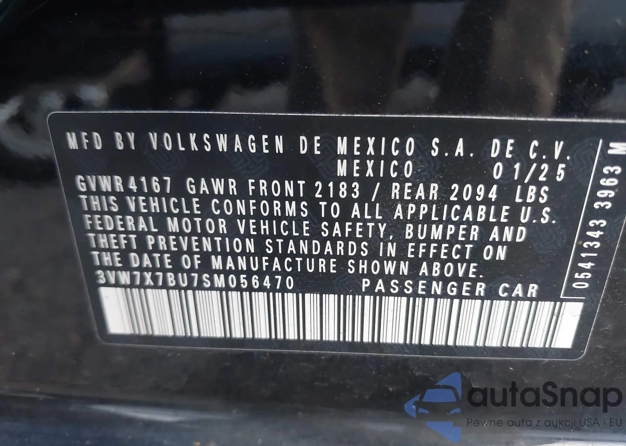 LOT: 43778162 VIN: 3VW7X7BU7SM056470
