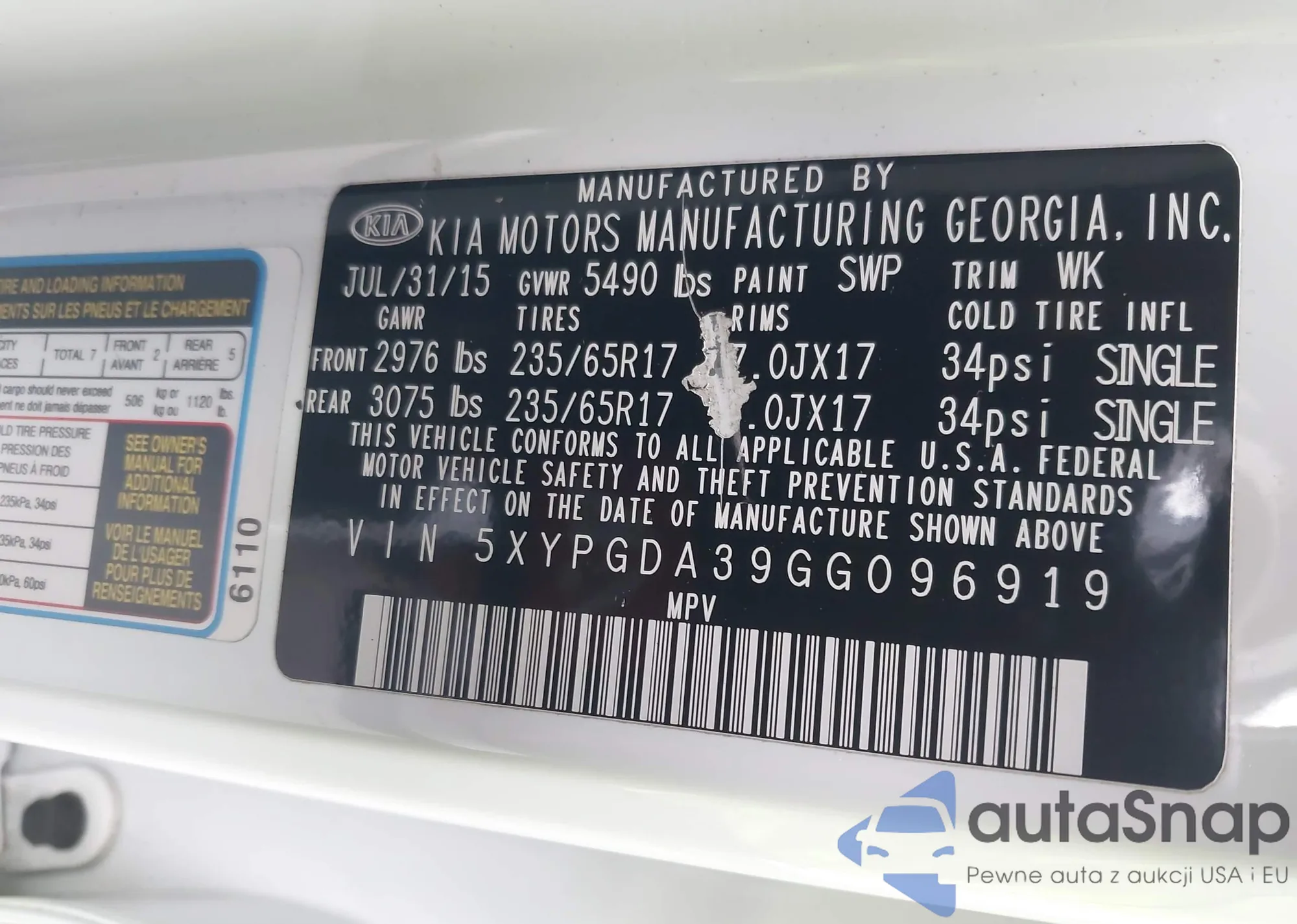 • VIN 5XYPGDA39GG096919