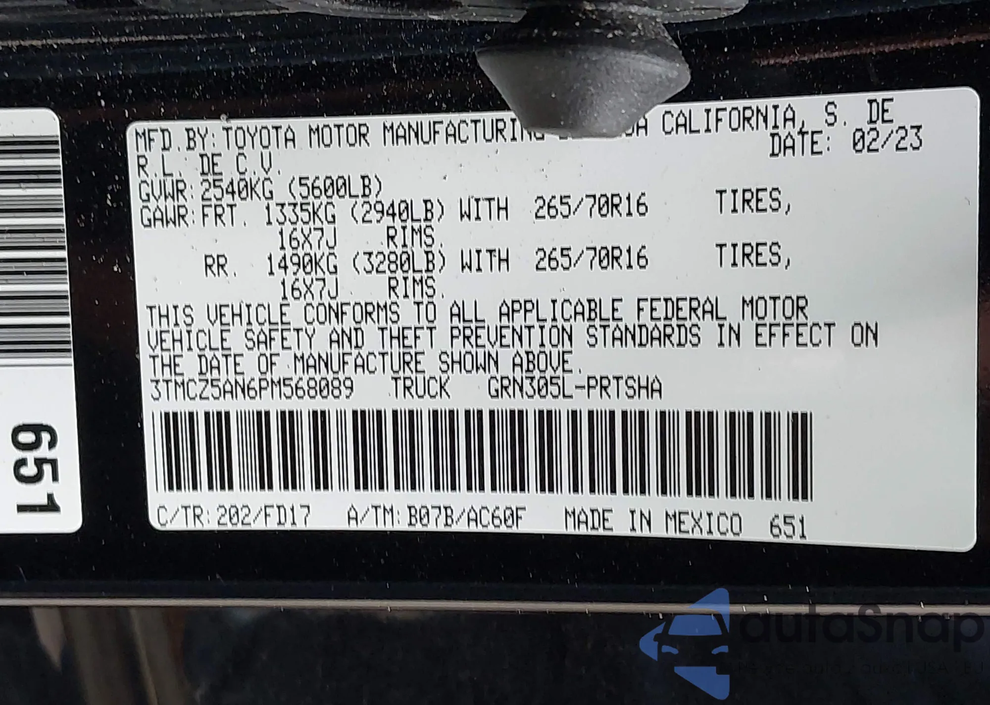 • VIN 3TMCZ5AN6PM568089