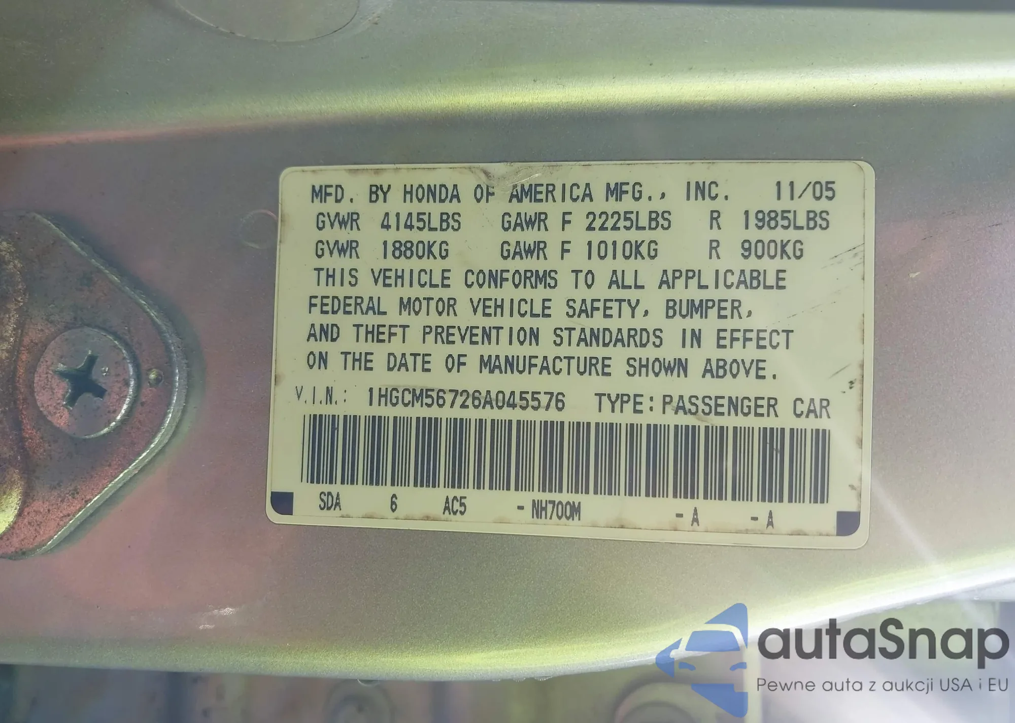 • VIN 1HGCV1F31JA051378