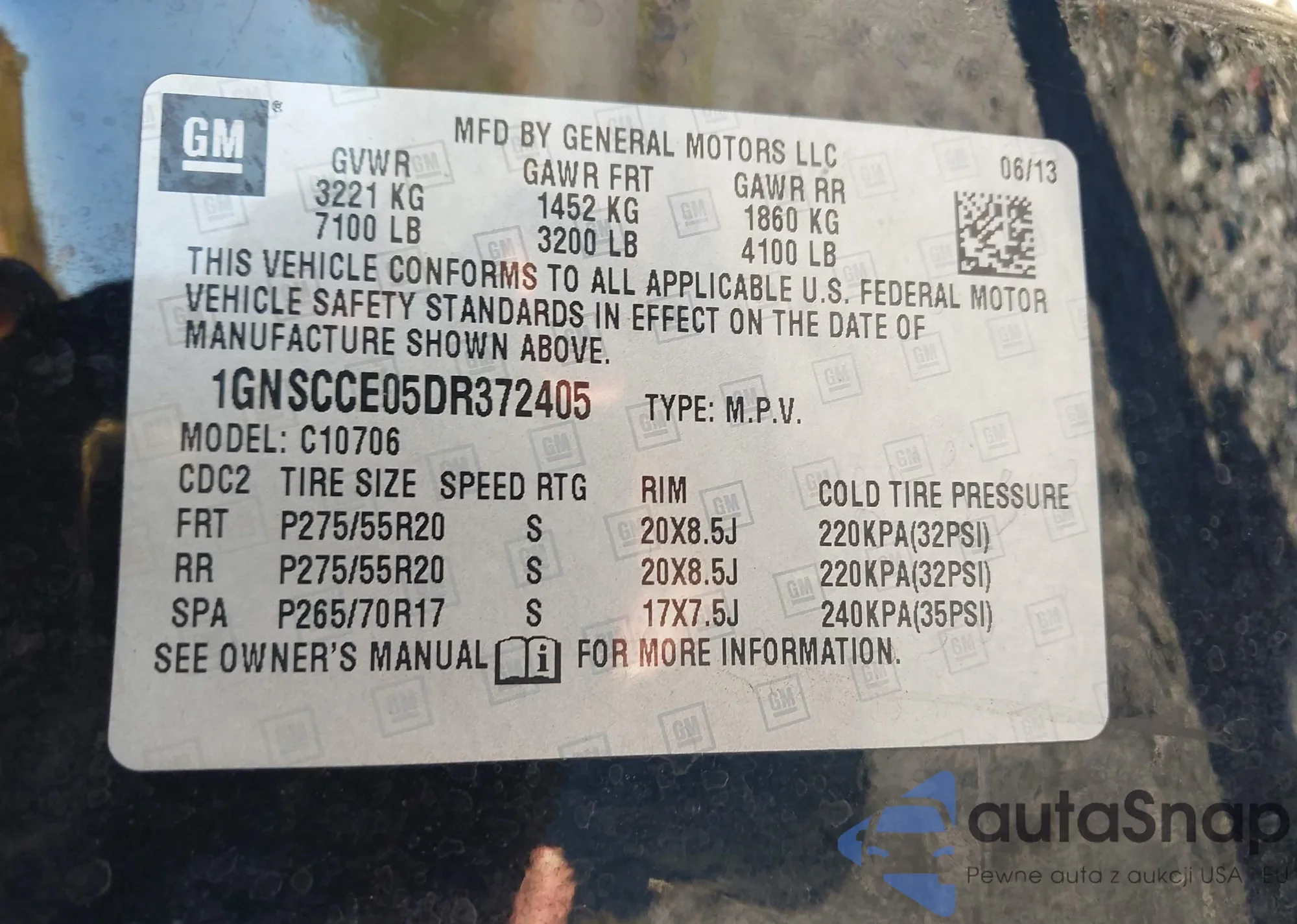 LOT: 43815802 VIN: 1GNSCCE05DR372405