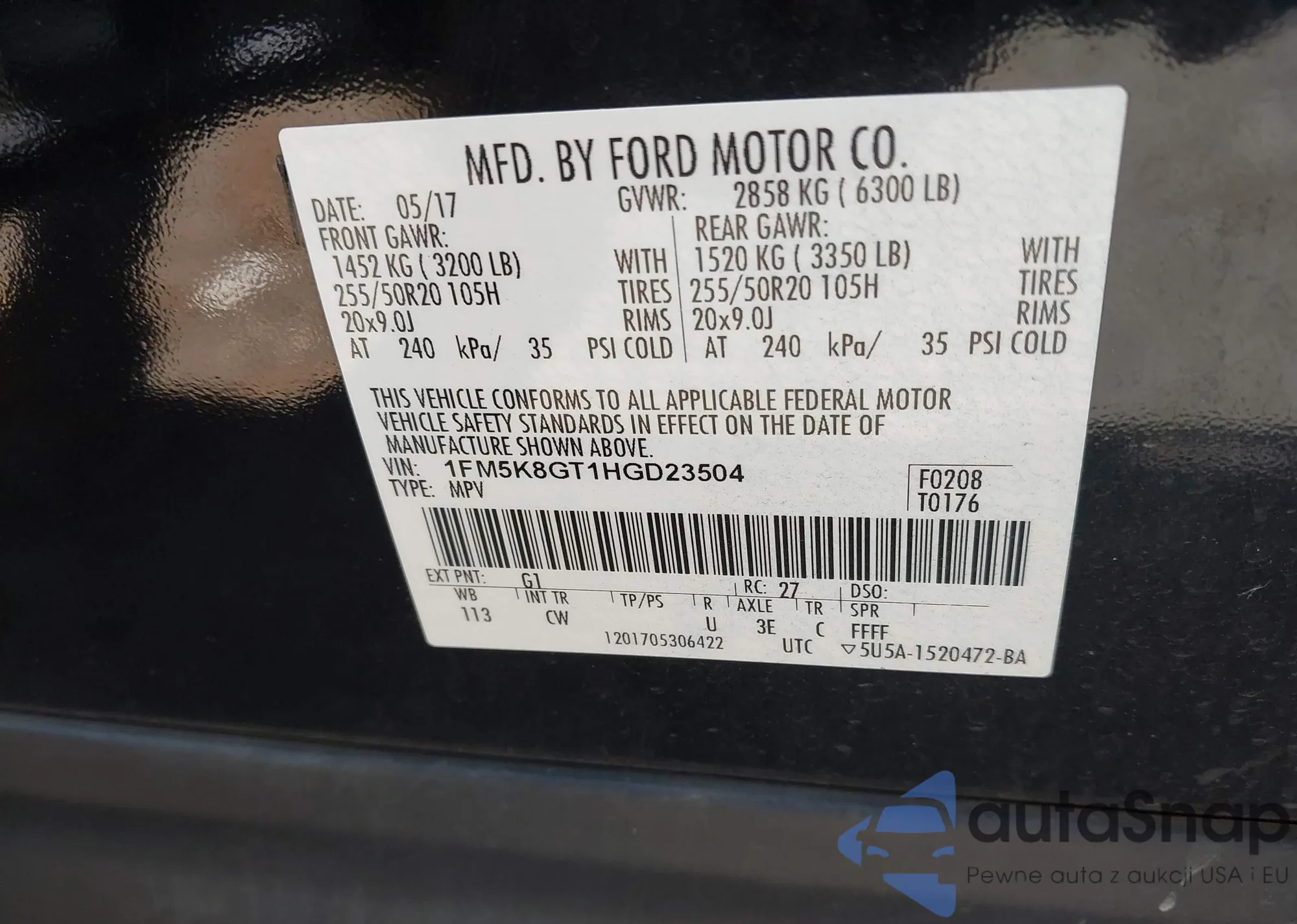 • VIN 1FM5K8GT1HGD23504