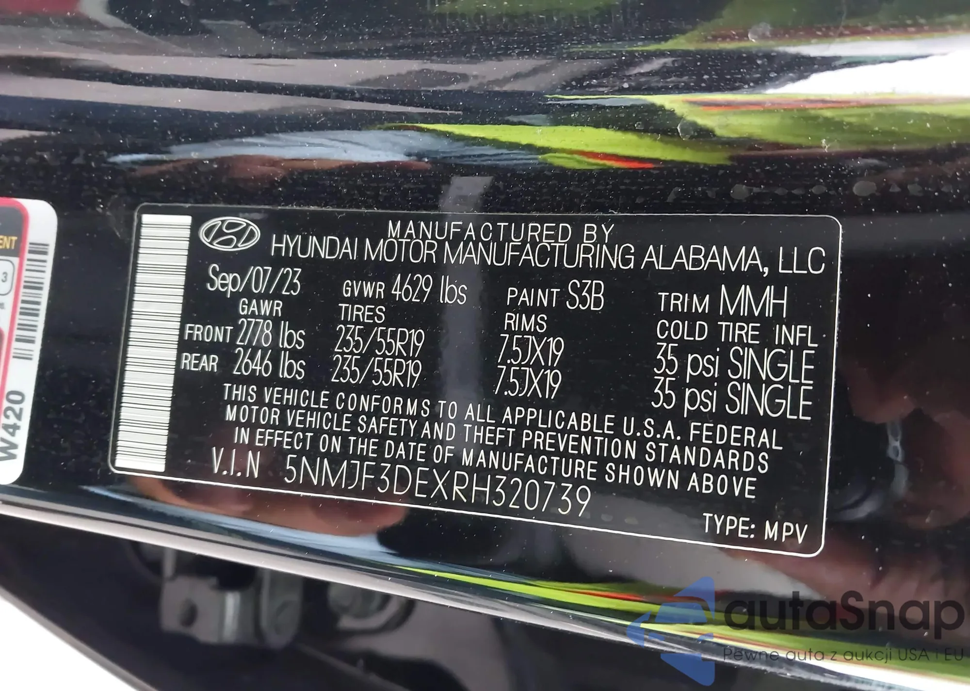 • VIN 5NMJF3DEXRH320739