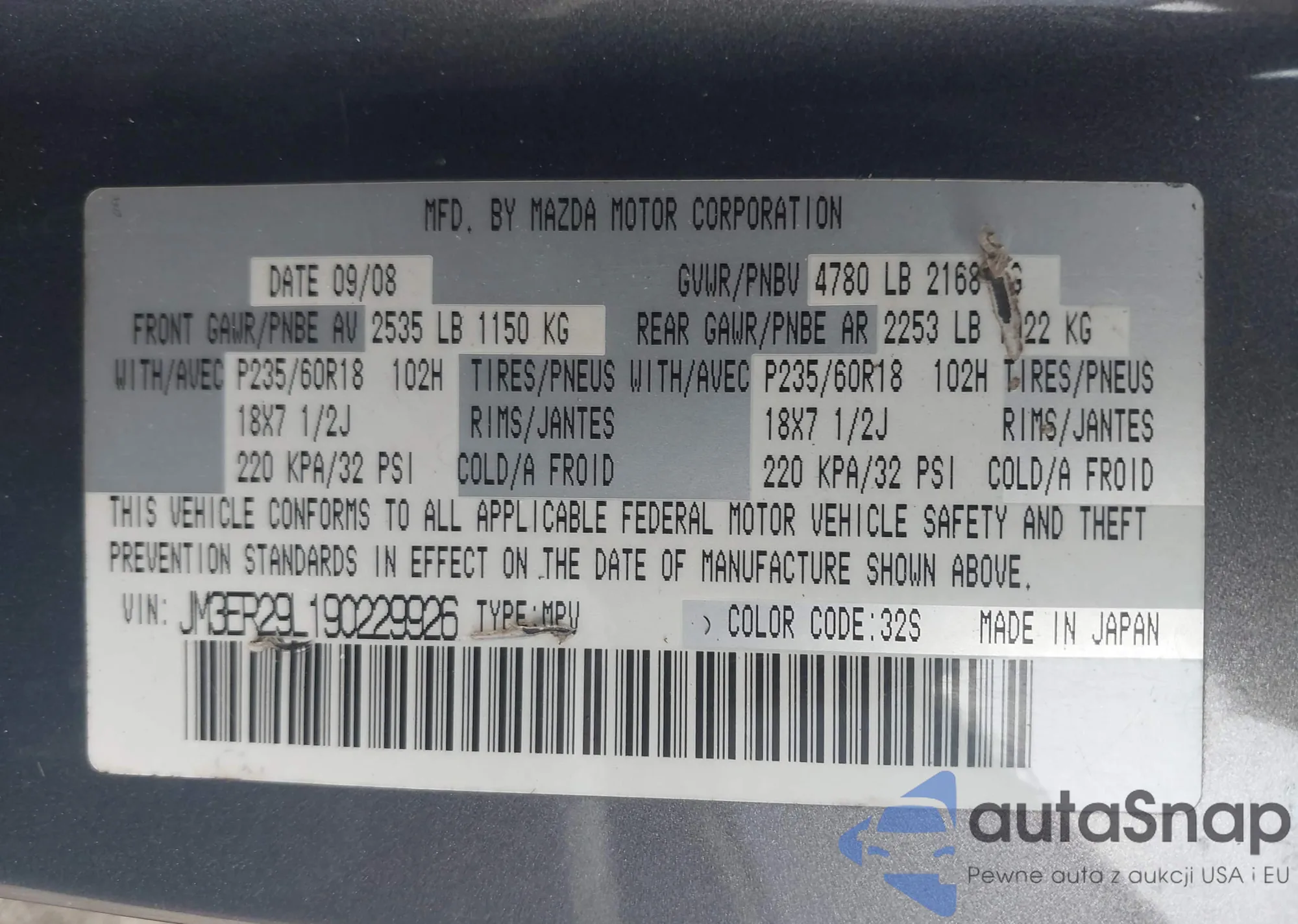 LOT: 43305094 VIN: JM3ER29L190229926